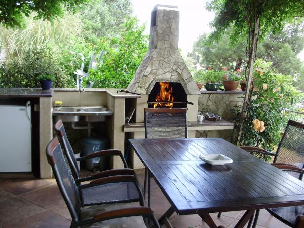 Kompletno i moderno uređeni apartmani u privatnoj kući koja se nalazi na 70 m od mora, od Marine. Apartmani se nalaze na visokom prizemlju. Prekrasan, panoramski pogled na Marinu Veruda ! Kuća se nalazi u naseljenom mjestu i okružena je pizzerijama i restoranima. Osiguran parking u dvorištu i mogućnost korištenja zajedničke natkrivene grill terase (veličie 30 m2 ) na kojoj se nalaze velika ljuljačka, grill, stol i stolice za 6 do 8 osoba, ležaljke, frižider. Pogodnije za mlađe osobe i parove sa djecom. Kuća je okružena zelenilom i cvijećem. Nedaleko od kuće (800-1000 m) nalaze se poznata pulska kupališta na poluotoku Verudela. . Autom možete do njih doći za 5 minuta, pješice za 10-20 minuta, a postoji i autobusna povezanost (autobusno stajalište 50 m od kuće ) do plaža i do grada. Nudimo povoljnije cijene u lipnju i rujnu kada nije špica sezone, nema velikih gužvi a temperatura mora i zraka je jako ugodna.