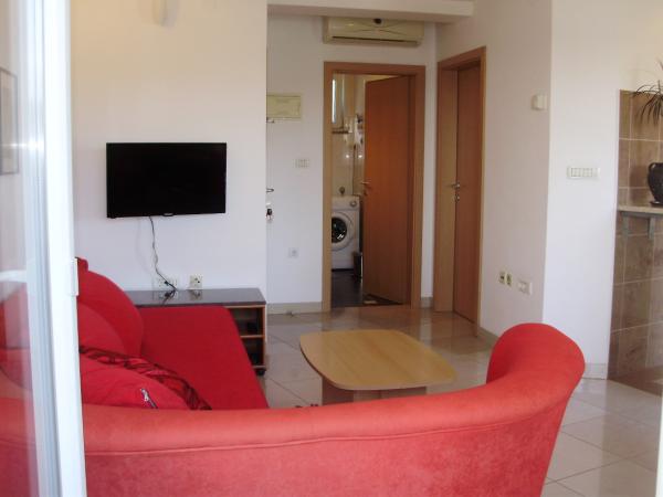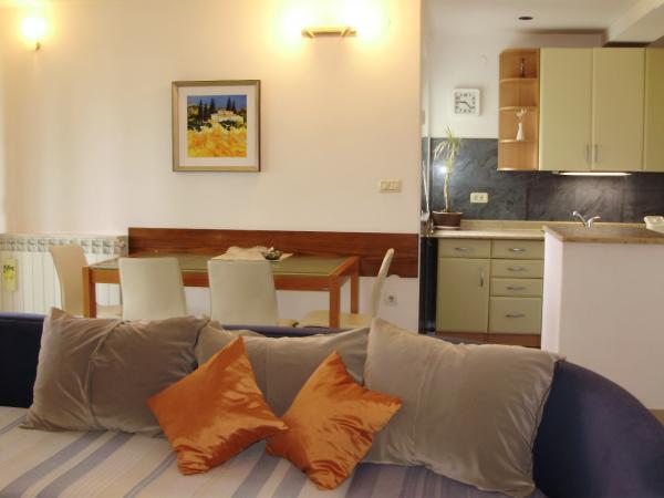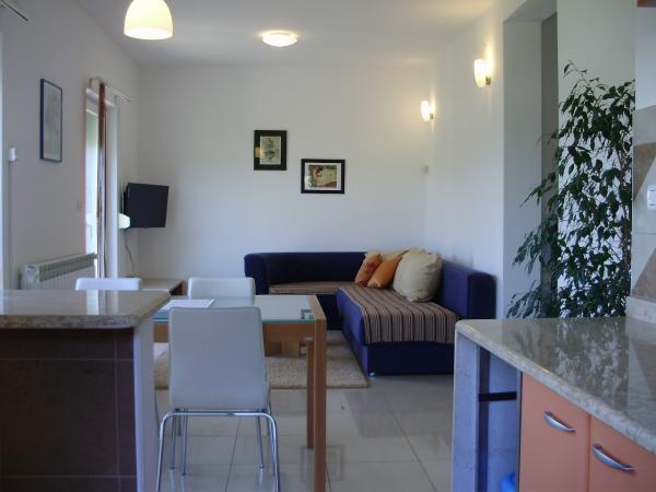 Dekor je točno kao što je prikazano. Stan je savršeno čist. Sva oprema i zalihe su u vrlo dobrom stanju. Pogled na nove luke je jako lijepo. Mjesto je dobro. Unatoč blizini glavne ceste može se očekivati bez buke. Vlasnici su vrlo lijepo i uvijek željan ugoditi - nikad agresivan! Mi su dobili karte s takvim interesa i dokaz pekare, restorana i shopping objekata i dobro informiranih. Vlasnici su također raspitivao se kod nas, u kojem restorani smo mogli dobro jesti i stoga se preporuča. Mi smo, među ostalim putovanjima u Farzana, Meldulin i Premantura je, svi koji su bili jako ljubazni.