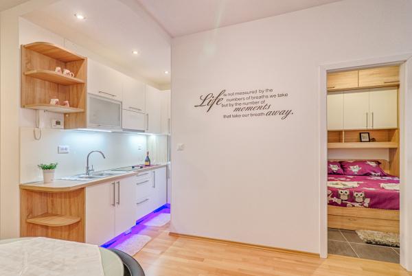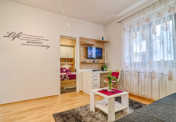 Pročitaj više Smještajne jediniceBoravišna pristojba je uključena u cijenu. CIJENA APARTMANA JE VIDLJIVA NA OGLASU !!! Da nepotrebno ne pišete upite za cijenu !!! Rezervacija se plaća 30% od ukupnog iznosa, ostatak u gotovini na dan dolaska. Pri dolasku se plaća security deposit od 100€(koji se vrača ako nema štete). Vrijeme dolaska je od 14 PM. Vrijeme odlaska 10 AM Dobrodošli !!! Apartman Love se nalazi u ulica Kačića Miošića Apartman Life se nalazi ulica Kačića Miošića NE IZNAJMLJUJEM NA JEDNU NOĆ !!!