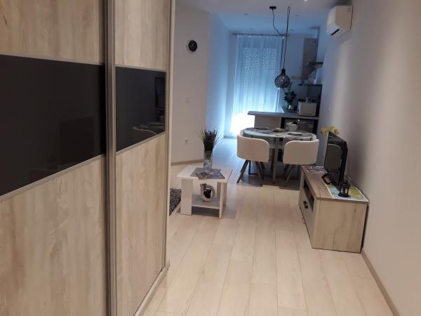 APARTMAN LOVE - PULA 40M2 - 1. KAT APARTMAN LIFE - PULA 40 M2 - 2. KAT U strogom centru Pule sa parkingom i garažom. Udaljen od svih sadržaja 200 m (trgovine, gradska tržnica, ribarna, pekare) Prekrasne gradske plaže su na 2 km ( gradski bus ) ili autom 5 min. Grad nudi prekrasne šetnje restorane, trgovine, razgledavanje znamenitosti, muzeje, ljetna događanja. Apartmani se sastoji od sobe, kuhinje sa dnevnim boravkom, kupatilom, povezani sa liftom iz garaže. Opremljenost apartmana potpuna u kuhinji (posuđe, kuhalo za vodu, mikrovalna) posteljina, ručnici, glačalo.