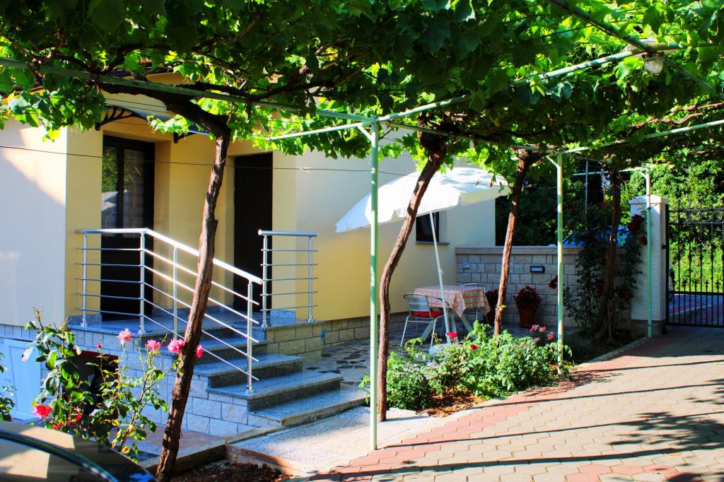 Obiteljska kuća koja ima dva apartmana za iznajmljivanje, jedan za 4-5 osoba i jedan za dvije osobe. Oba apartmana nalaze se u prizemlju. Apartman za 4-5 osoba prostran je, svijetao i udoban sa dvije spavaće sobe, kuhinjom, blagovaonicom, dnevnim boravkom, kupaonicom i terasom. Apartman je klimatiziran, ima wifi i sve kućanske aparate. Gosti mogu uživati na terasi sa pogledom na vrt i dvorište i mogu koristiti roštilj. Apartman za dvije osobe ima bračni krevet, kuhinju, kupatilo i terasu. Idealno su smješteni, 3 minute autom do parkirališta u centru grada i 3 minute autom do plaže. Ljubimci nisu dozvoljeni.