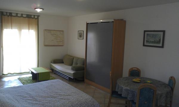 Studio apartman za dvije osobe, s jednim pomoćnim krevetom. More i plaža su udaljeni 200 metara. Blizina nacionalnog parka Brijuni kao i teniskih terena. Autobusna stanica je ispred apartmana odakle prometuju autobusi za Pulu.