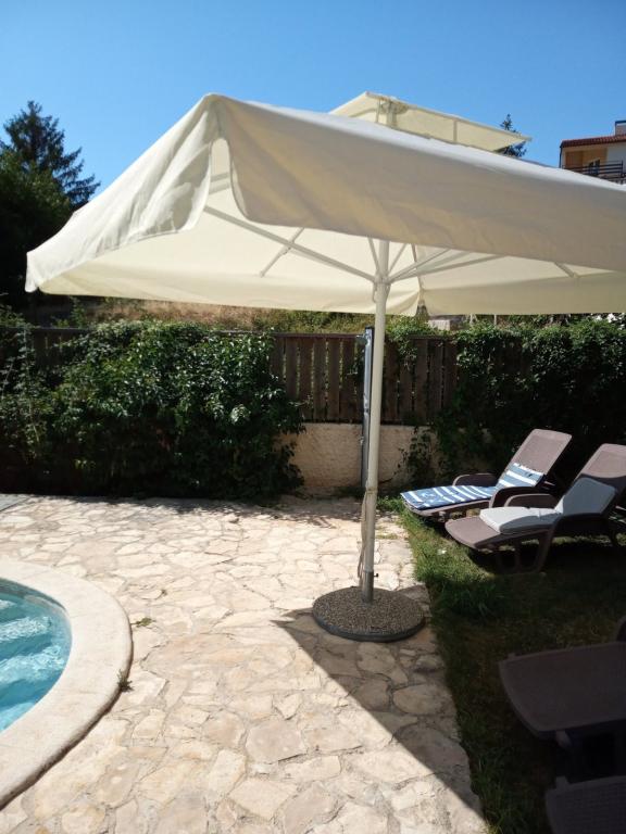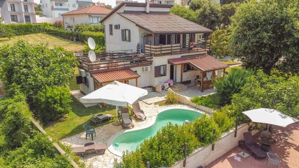 Kompletno i suvremeno opremljeni apartmani u mirnome dijelu mondenog naselja Pješčane uvale kraj Pule, okruženi zelenilom, smješteni u prizemlju obiteljske kuće, sa bazenom, udaljeni samo 50 metara od mora