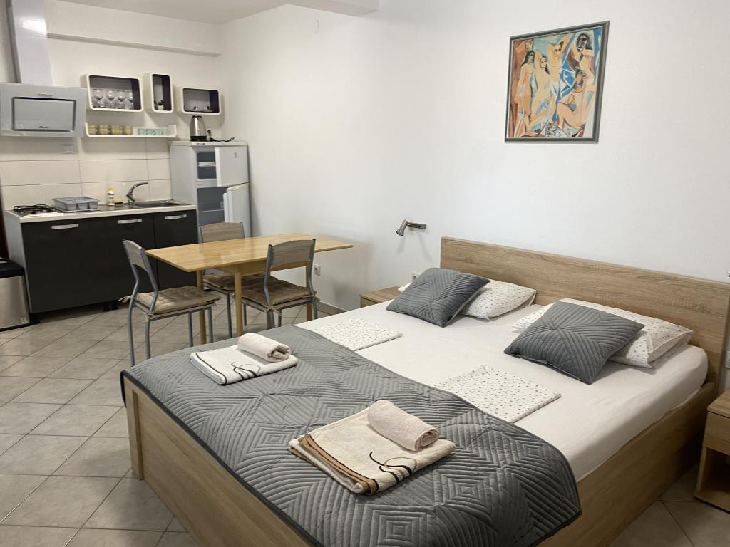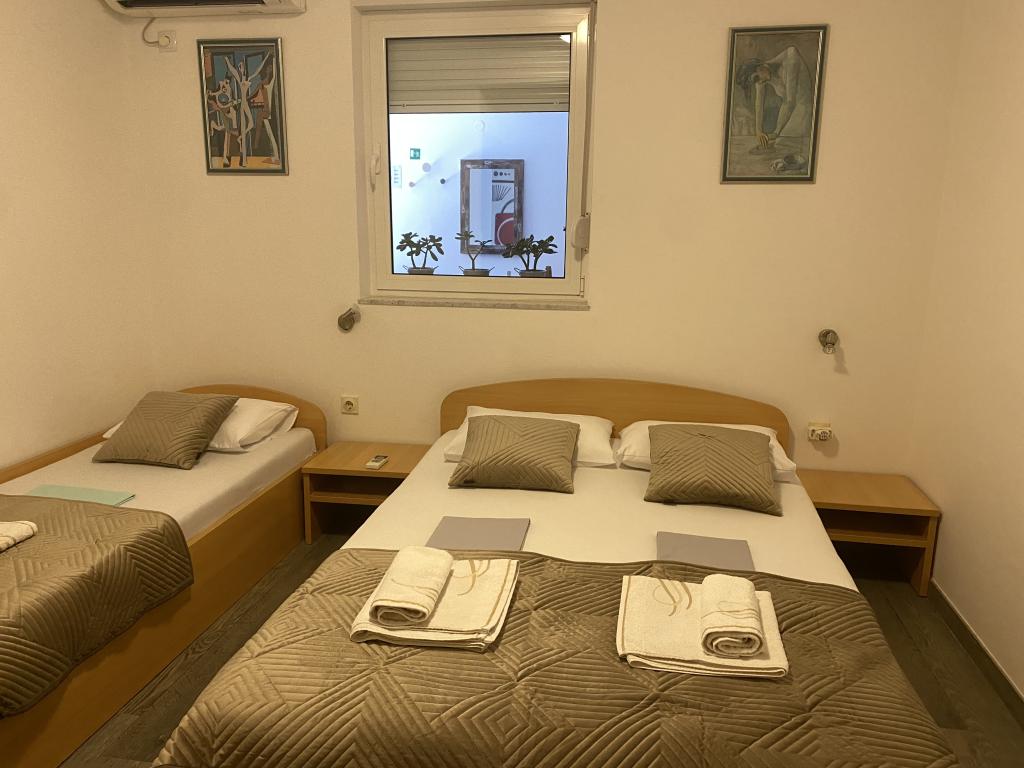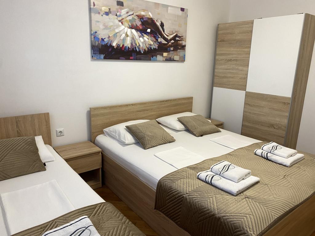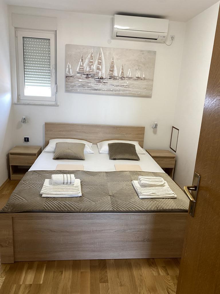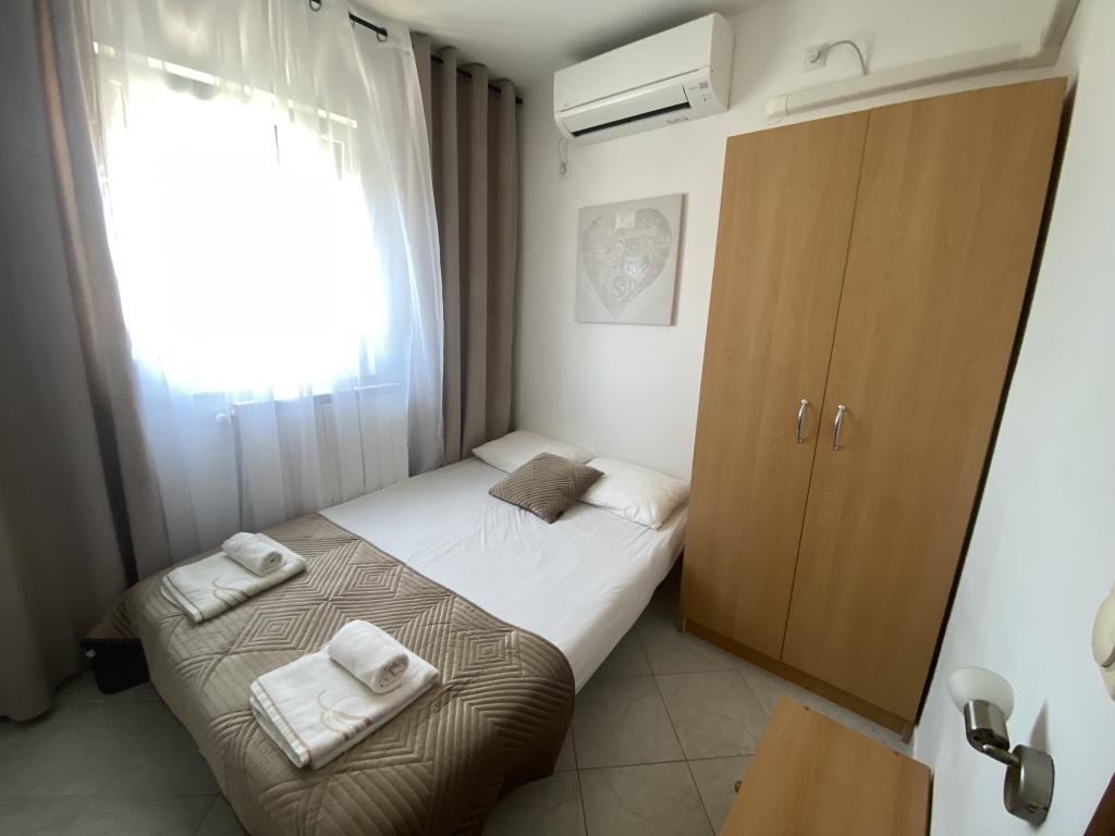 Pročitaj više Smještajne jediniceObavezni depozit od 100 € za APP: A, A1, B i B1, za bilo kakvo oštećenje ili kvar. Obavezni depozit od 100 € za APP: C, C1 i D , za bilo kakvo oštećenje ili kvar. Ako oštećenja nema - depozit se pri povratku vraća gostu. Doplate : 1-3 noćenja 25% na cijenu. Dodatne usluge: - dječji krevetić: 5 €/dan - perilica rublja: 5 €/pranje Usluge u cijeni app: klima, centralno grijanje, bor. pristojba, prijava boravka, parking, wi-fi završno čišćenje. Rezervacija se smatra konačno potvrđenom samo nakon primitka avansa od 20%! DOLAZAK od 14:00 - 22:00 sata ODLAZAK od 07:00 - 10:00 sata