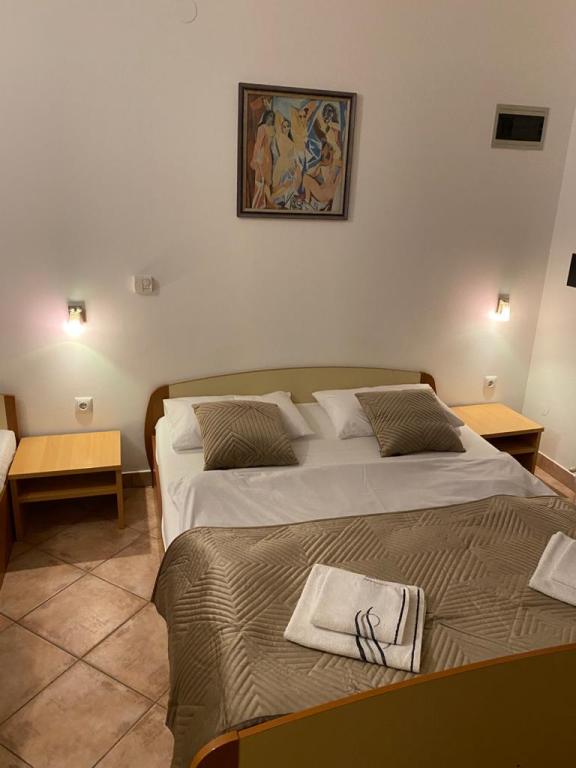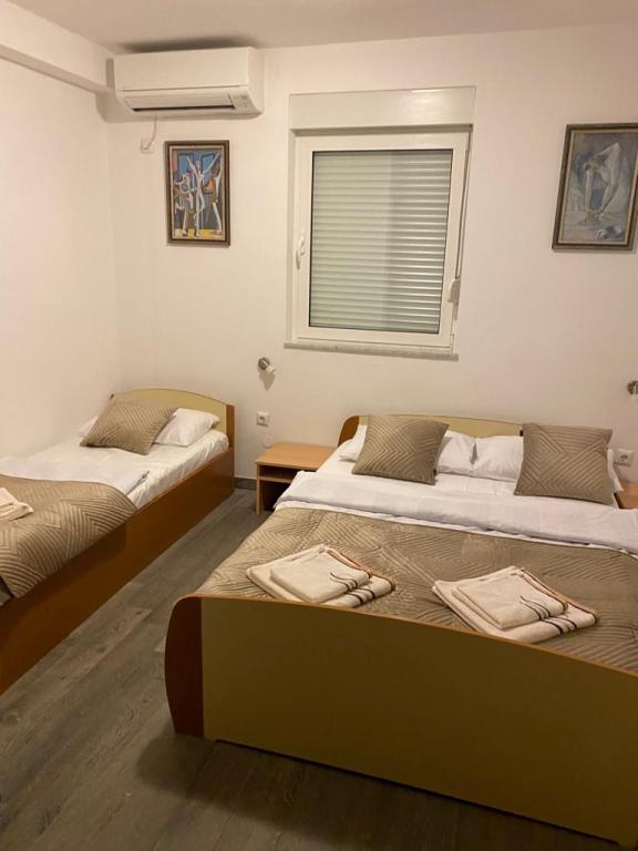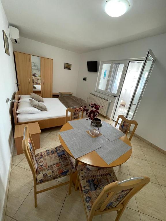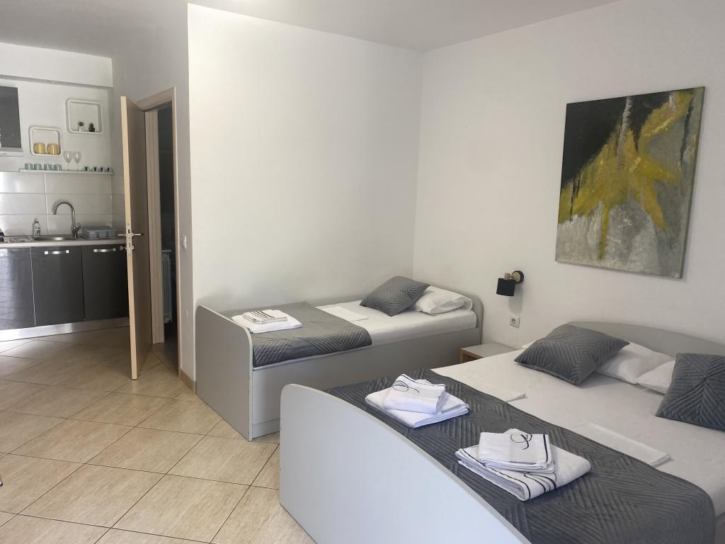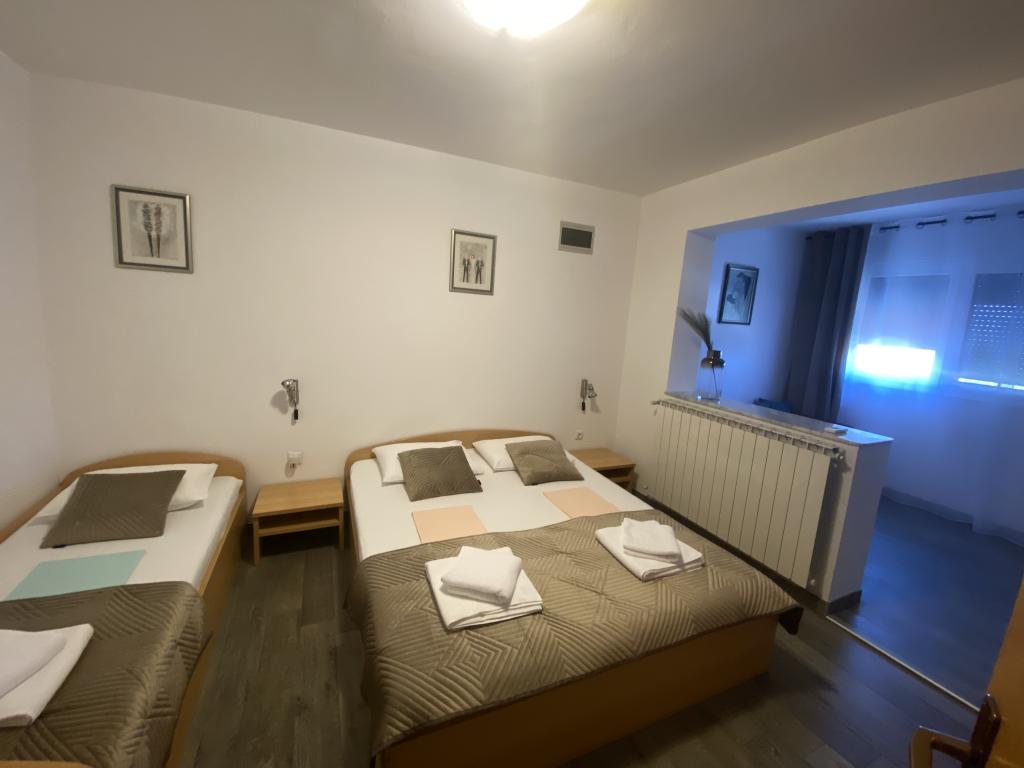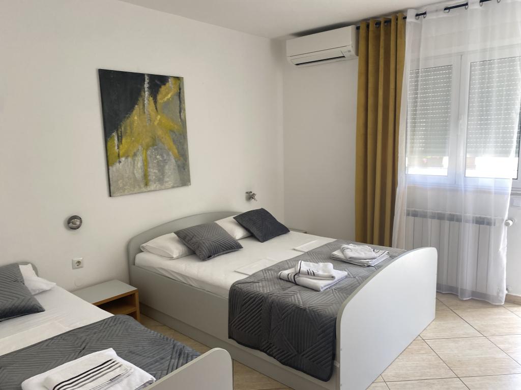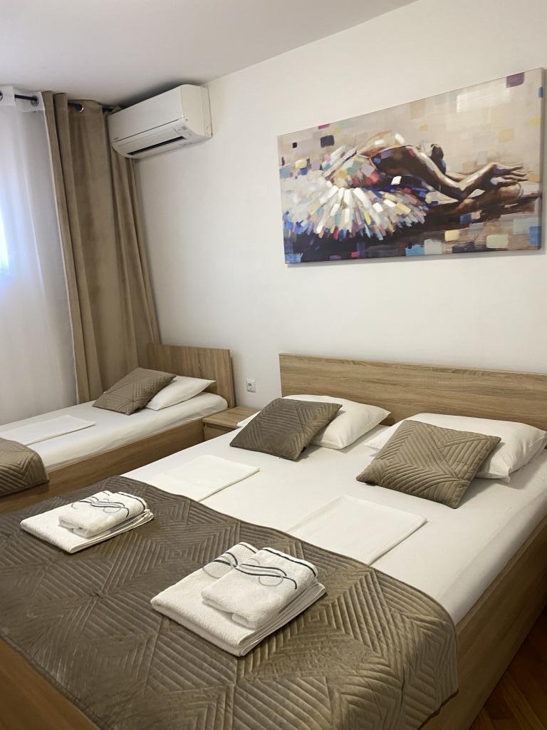 Pročitaj više Smještajne jediniceObavezni depozit od 100 € za APP: A, A1, B i B1, za bilo kakvo oštećenje ili kvar. Obavezni depozit od 100 € za APP: C, C1 i D , za bilo kakvo oštećenje ili kvar. Ako oštećenja nema - depozit se pri povratku vraća gostu. Doplate : 1-3 noćenja 25% na cijenu. Dodatne usluge: - dječji krevetić: 5 €/dan - perilica rublja: 5 €/pranje Usluge u cijeni app: klima, centralno grijanje, bor. pristojba, prijava boravka, parking, wi-fi završno čišćenje. Rezervacija se smatra konačno potvrđenom samo nakon primitka avansa od 20%! DOLAZAK od 14:00 - 22:00 sata ODLAZAK od 07:00 - 10:00 sata