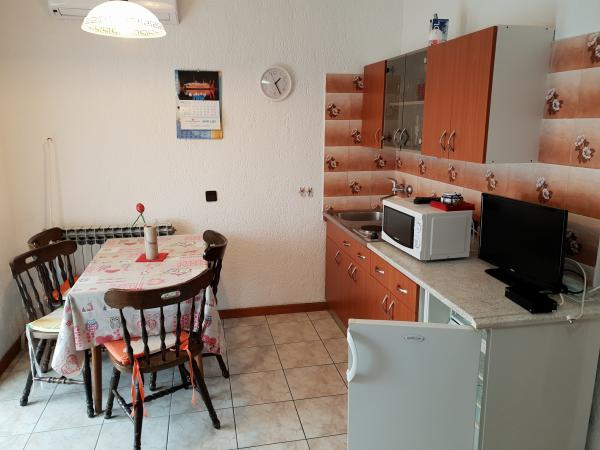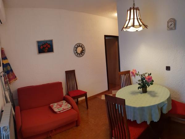 U neposrednoj blizini plaže. Nalazi se u prizemlju. Ima dvije sobe sa francuskim ležajem i dodatni pomoćni ležaj u dnevnom boravku. Do centra 15 minuta hoda, do plaže 1 minuta.