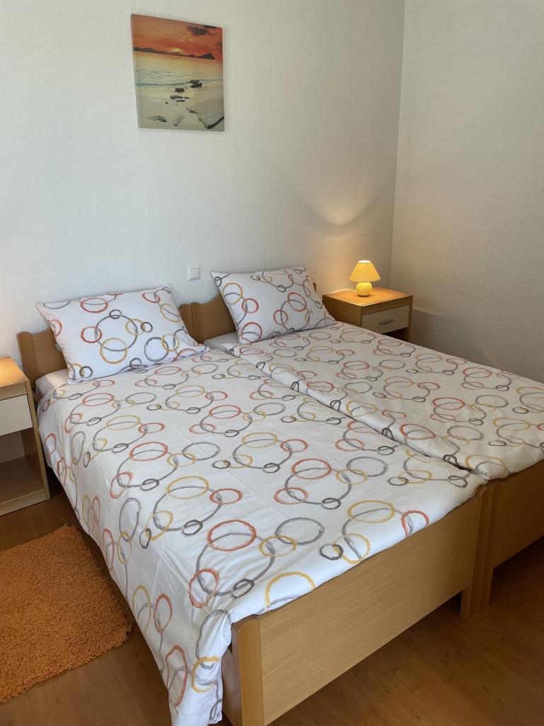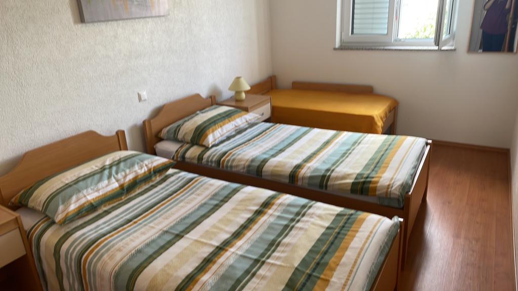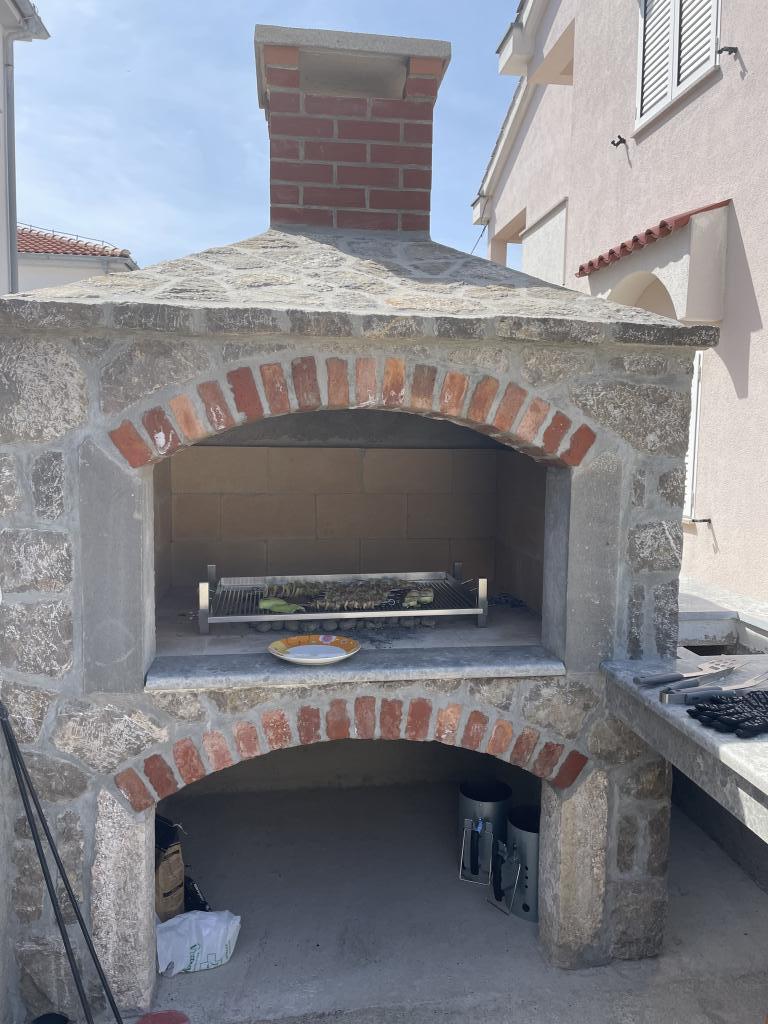 U malom primorskom mjestu Punat,u prekrasnom okruženju maslinovih stabala i smokava , smještena je naša obiteljska kuća s dva moderno opremljena apartmana u visokom prizemlju. Svaki apartman ima dvije odvojene spavaće sobe za smještaj četiri osobe,kupaonu/ WC s tuš kabinom, kuhinju s dnevnim boravkom u kojem se nalazi pomoćni ležaj za još dvije osobe. Iz dnevnog boravka izlazi se na prostranu natkrivenu terasu opremljenu sjedećom garniturom. Apartmani su opremljeni klima uređajem, SAT/TV, posteljinom,ručnicima, perilicom posuđa, frižiderom sa zamrzivačem, aparatom za kavu,kuhalom za vodu, posuđem i ostalim kuhinjskim priborom. Za vaš automobil osigurano je parkirno mjesto u našem dvorištu. Dobro nam došli!