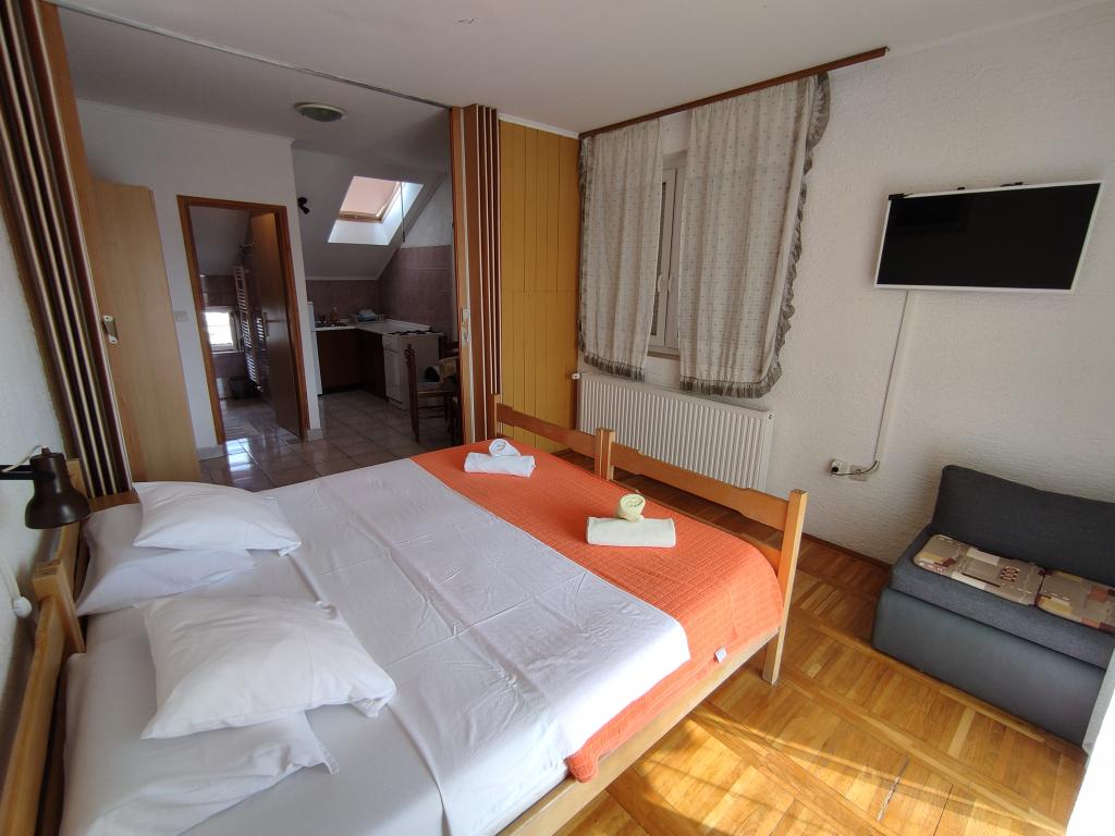 Pročitaj više Smještajne jediniceAkontacija ili rezervacija apartmana iznosi 100 EUR (750 HRK), a plaća se prilikom rezervacije željenog smještaja. Ostatak se plaća prilikom dolaska. Pomočni ležaj - 5 EUR djeca/10 EUR odrasli. Boravak do 3 noćenja - cijena se uvečava za 30% Korištenje klime uračunato u cijenu.