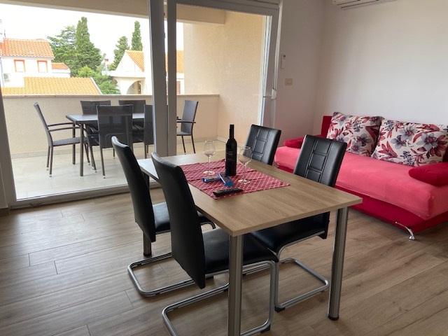 Kao obitelj tražili smo stan za 5-6 osoba i pronašli ovaj odličan stan. Lokacija je dobra, čak i ako morate pješačiti nekoliko metara do plaže, ali stan je stvarno odličan. (Za nas je to trajalo oko 10-12 minuta, ovisno o tome koliko brzo idete. Ovo možemo preporučiti svima. U ovoj novoj kući sve sobe su čiste i dobro opremljene. Također smo smjeli koristiti perilicu rublja u kući. Klima uređaj je definitivno jako dobar za sve sobe u srpnju. Usluga je jako dobra. Također smo mogli zamisliti da ćemo opet otići na godišnji odmor. Nedostajala nam je jedna sitnica: mali stol ili polica na koju možete staviti ključeve i mobitele u ulazni prostor, ali to je definitivno za svakoga drugačije. Vrhunac je bio kada su rođendanska djeca dobila svoju tortu, to je bilo pravo iznenađenje !!! Zahvaljujući Mirjani i njezinoj obitelji, također smo mogli razgovarati njemački s članom obitelji iznajmljivača, što nam je bilo od velike pomoći. Ostali smo u ovom stanu 2 tjedna u srpnju 2021. Puno pozdrava Mirjani i nama ostalima, Obitelj Janzen