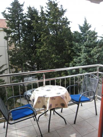 Novosagrađeni i suvremeno opremnjeni apartmani iznad plaže u mirnom apartmanskom naselju. Šetnica uz more i plaže prema centru mjesta. Blizina restorana, kafića, igrališta za djecu, pekare i štandova sa voćem. Plaže su od sitnog šljunka i pjeska s borovima za hlad. U cijenu uključeno parkirno mjesto u dvorišu objekta, klima, bežični internet, satelitska TV, boravišna taksa. Pješice do plaže 3 minute.