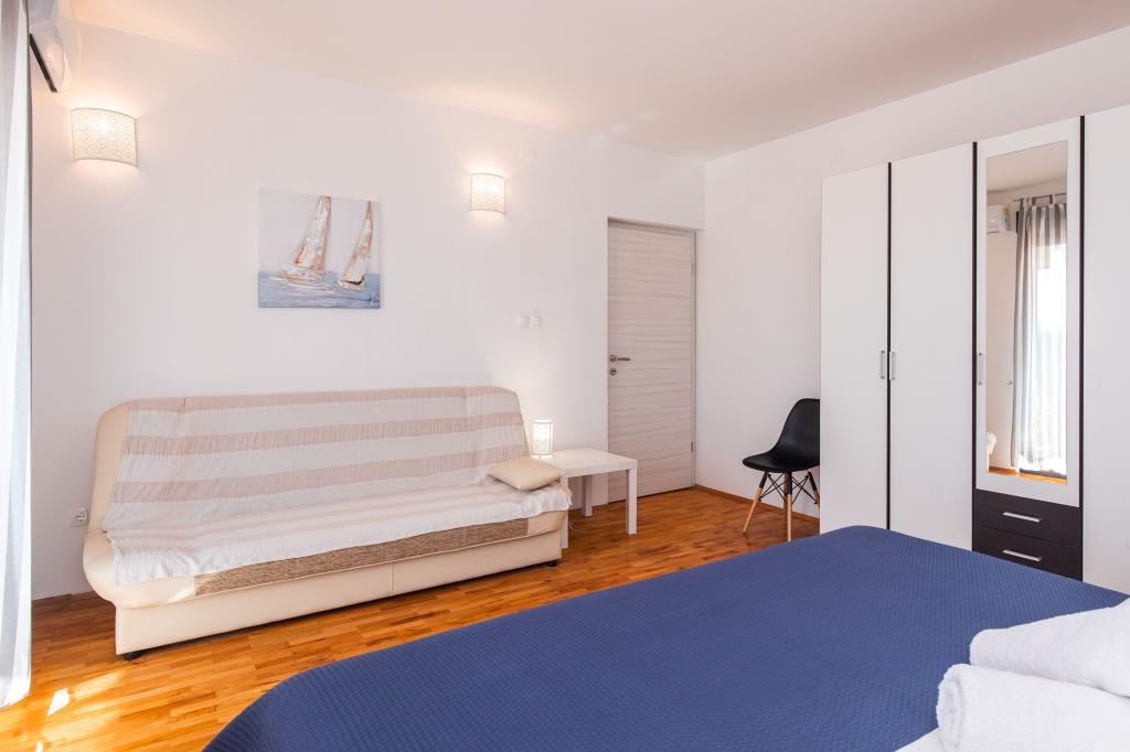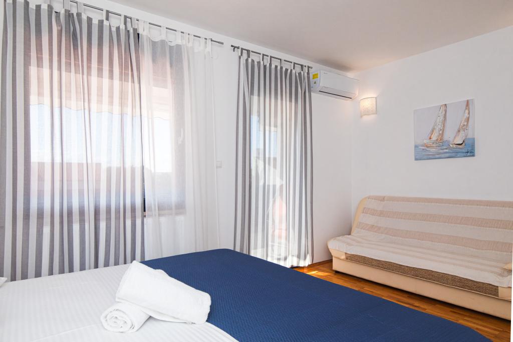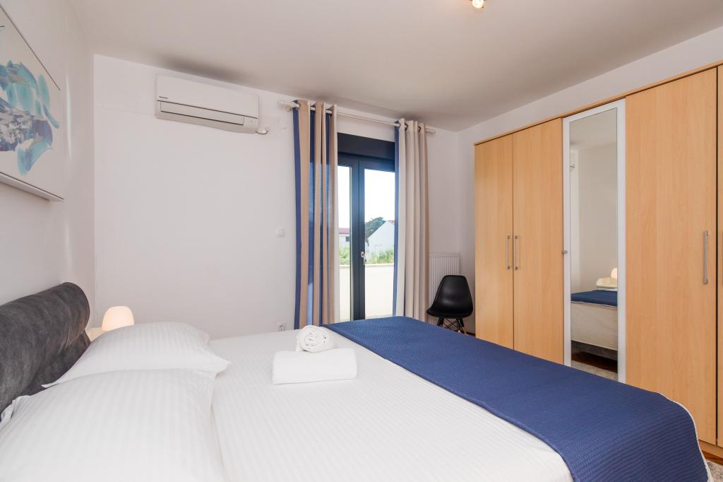 U apartmanu je posteljina i ručnici. Za vrijeme svog boravaka možete se koristiti zajedničkim bazenom (slatka voda 5x3, dubina1.2m). Bazen nije grijan. Mogućnost korištenja zajedničkog roštilja. U smještajnu jedinicu je dozvoljeno dovesti kućnog ljubimca uz nadoplatu. U kući postoji još jedan apartman u kojem će vjerojatno boraviti drugi gosti za vrijeme vašeg ljetovanja. Tijekom vašeg boravka, domaćini će se vjerojatno nalaziti u kući. Sadržaje apartmana mogu koristiti samo osobe koje su prijavljene kao gosti, a domaćin na traženje gosta može odobriti eventualne posjete u određenom vremenu.
