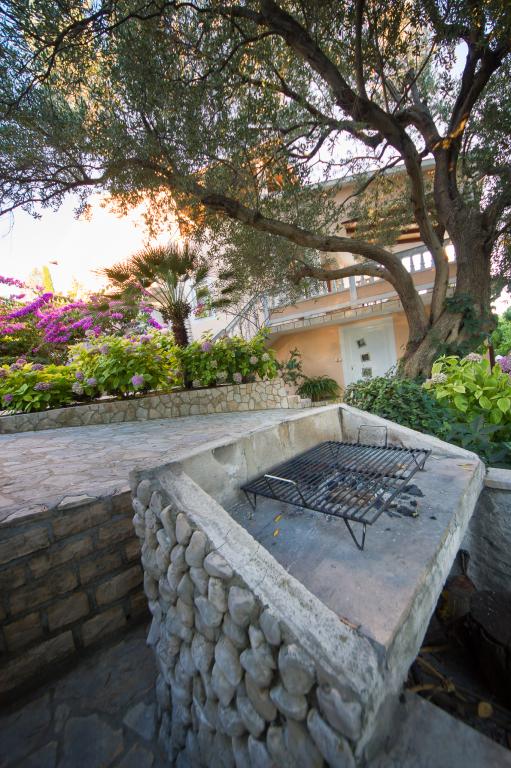 Kuća je smještena na mirnom mjestu okružena stoljetnim maslinama. Prva plaža se nalazi 200 m od naše kuće. Objekt se nalazi 10 -15 minuta hoda do centra starog grada Raba. Apartman je kompletno i suvremeno opremljen te ga krasi velika natkrivena terasa.