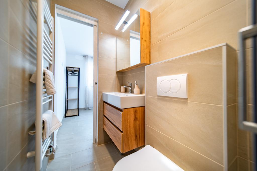Apartman je čist, uredan i redovito održavan, izvrsno opremljena kuhinja, veoma čista kupaona, klima uređaj rashladi cijeli apartman za 30-ak min. Lokacija je izvanredna ako želite obići otok Rab autom jer se nalazi u središnjem dijelu otoka pa ćete do svakog mjesta stići jako brzo (u roku 10 min. najviše). Usluga domaćina je također izvanredna, gđa. Ljuba i Sandra su zaista ugodne i ljubazne, nenametljive, poštuju vaš mir i privatnost. Ako dolazite s kućnim ljubimcem, plaža za pse nalazi se svega 3 min. šetnje od apartmana.