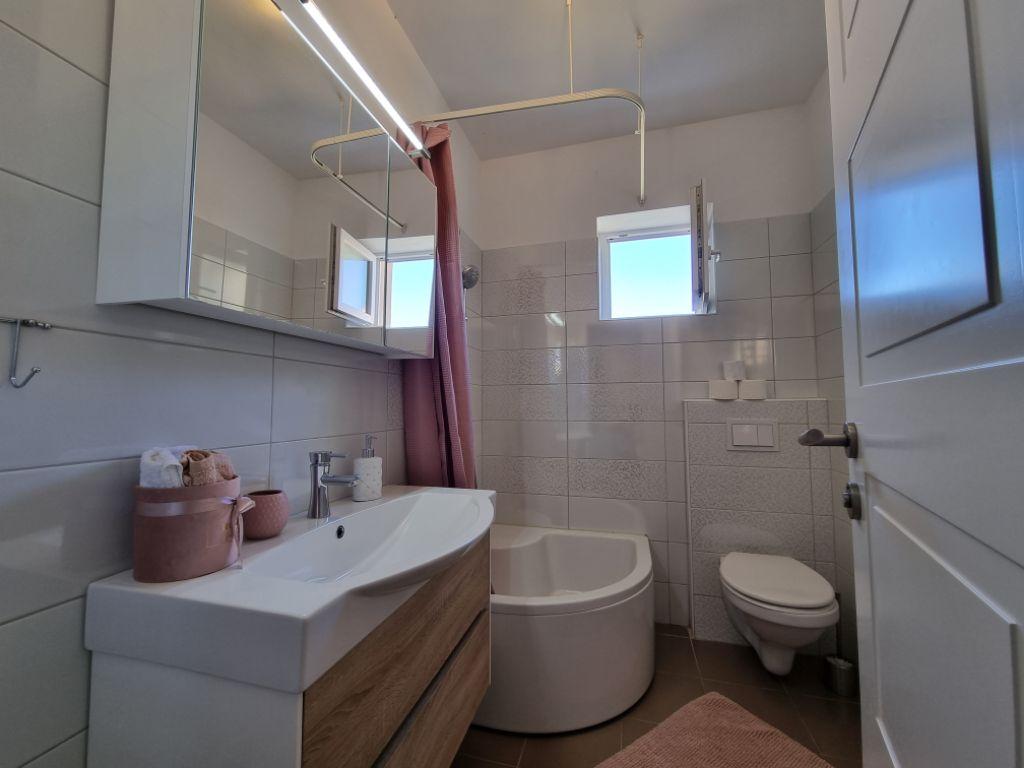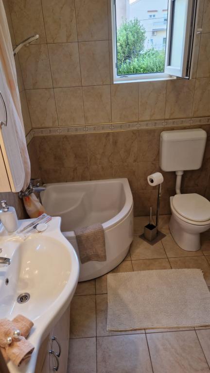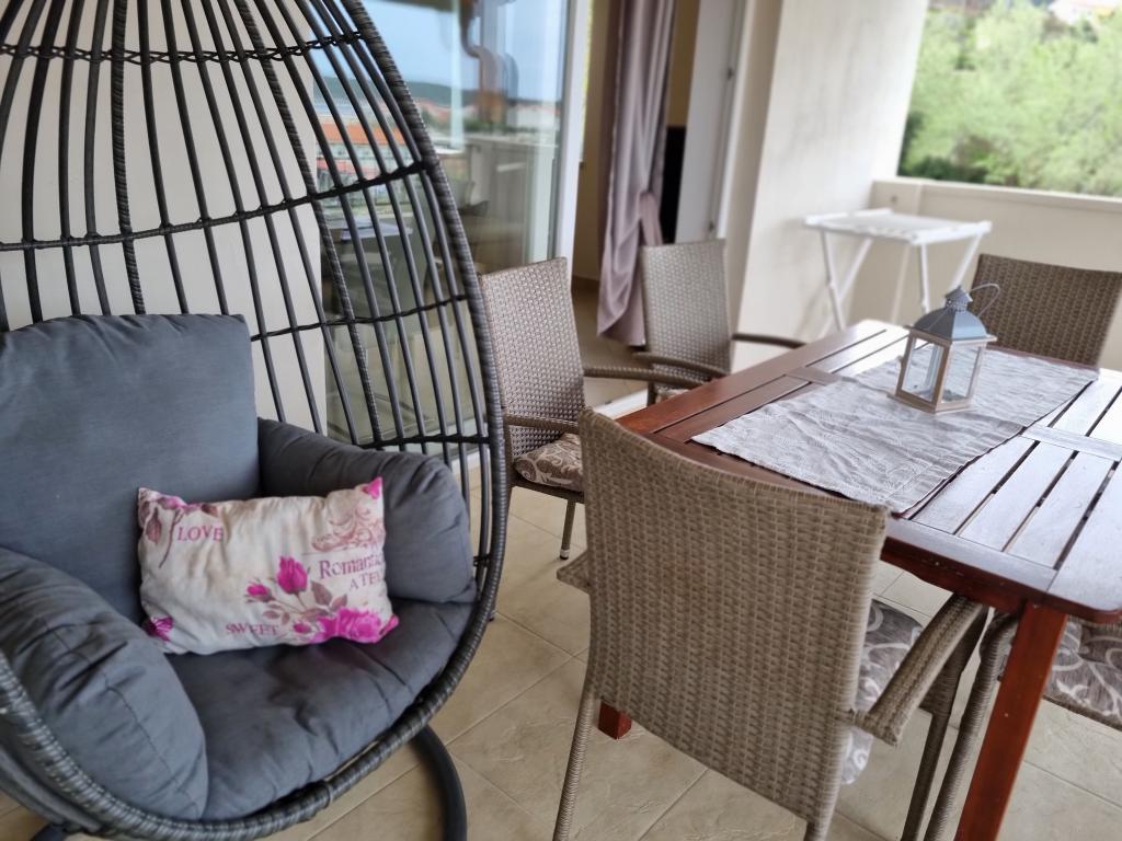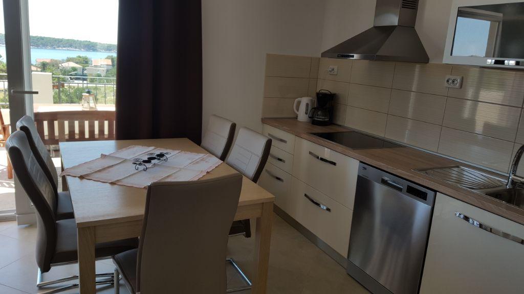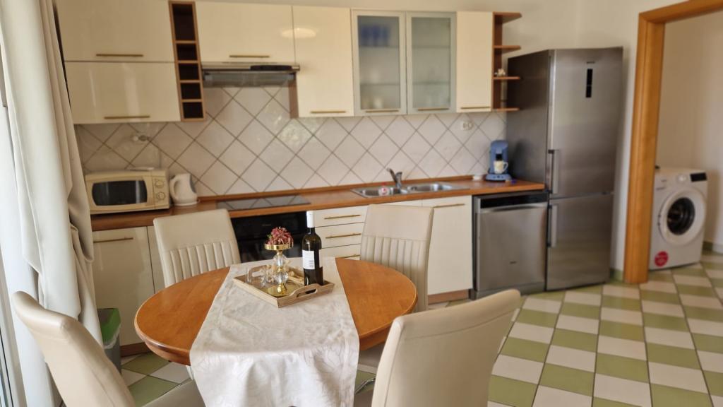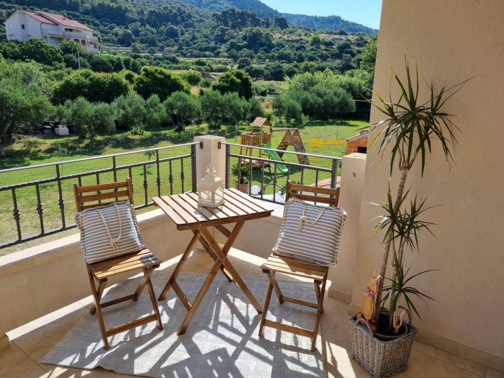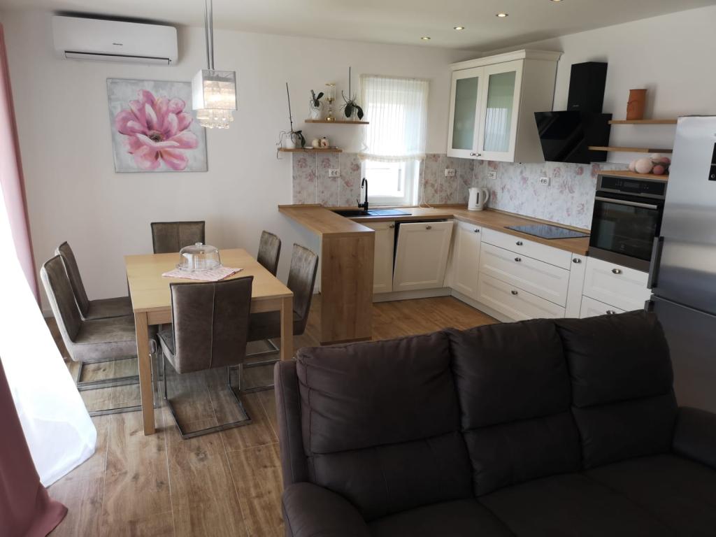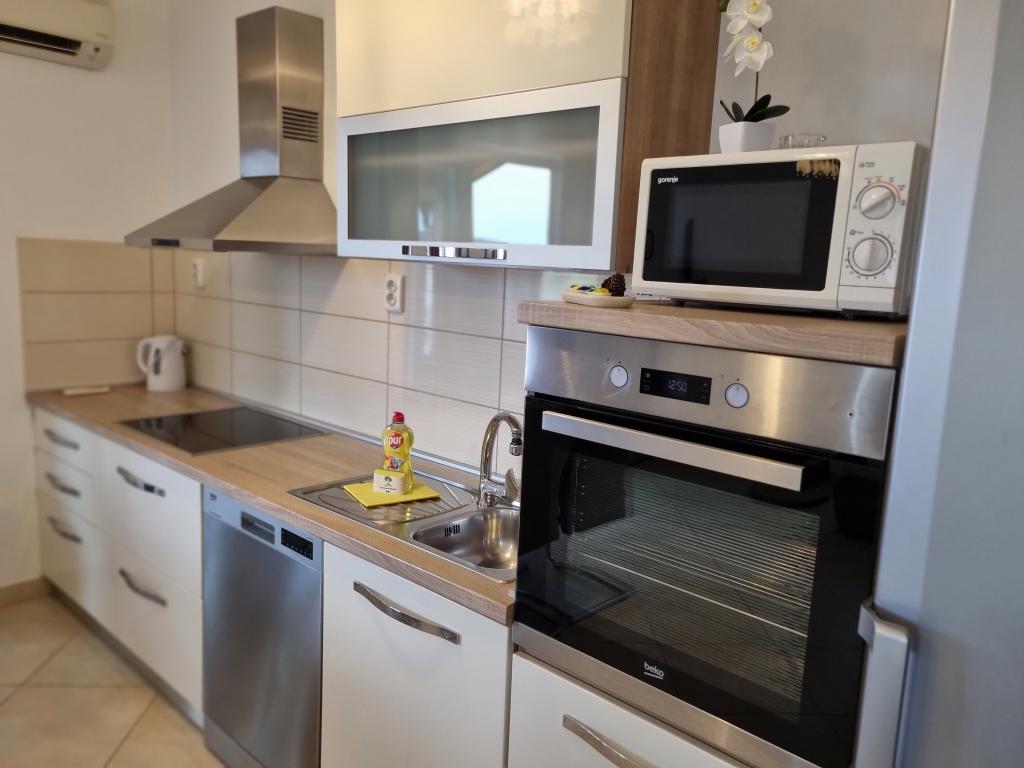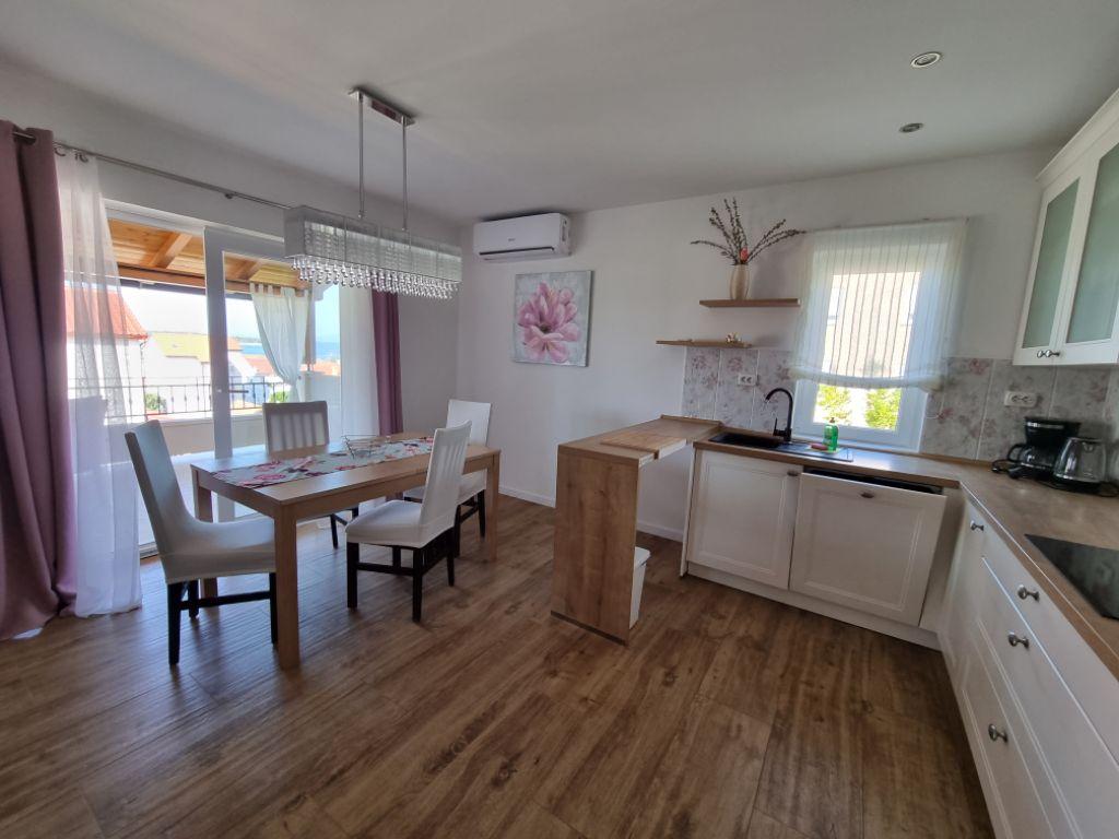 Lijepo uredeni apartmani sa svom opremom za olaksavanje vaseg odmora. Kuca je okruzena velikim vrtom u kojem su djecje igraliste i grill. Svaki apartman ima zasebnu terasu s pogledom na more. Kuca je udaljena 400 m od mora i najblize plaže.