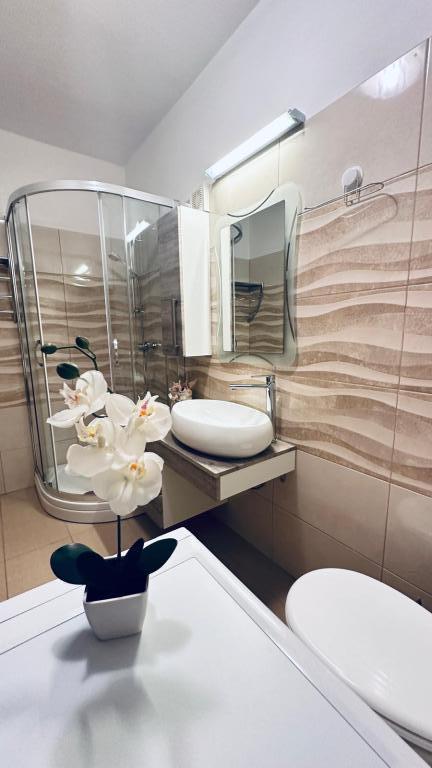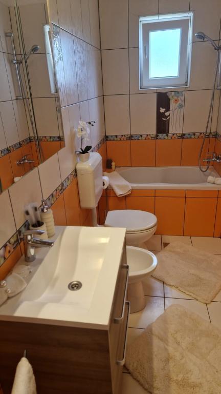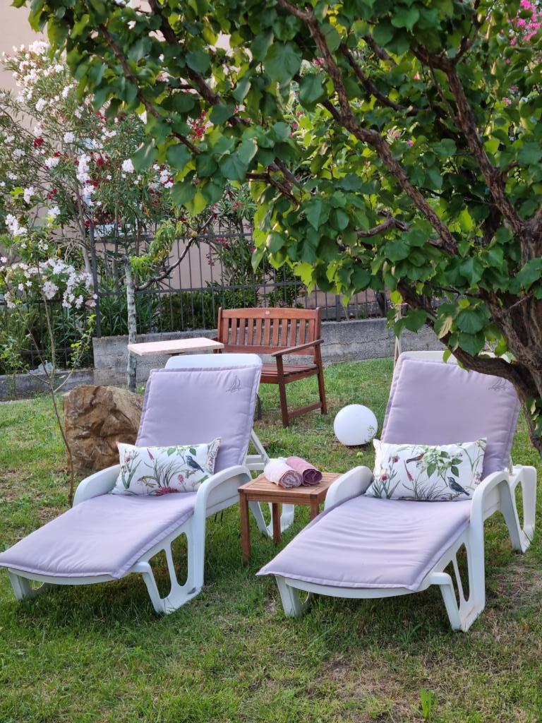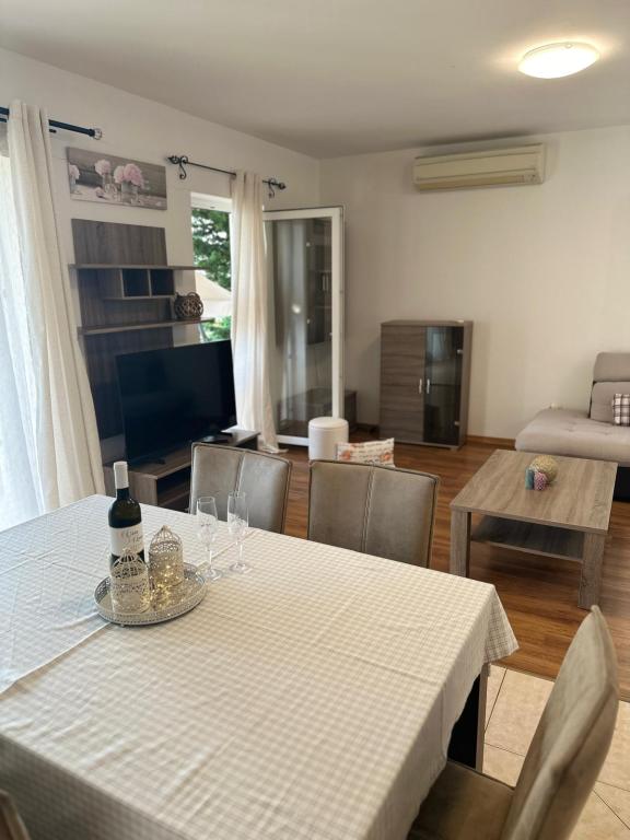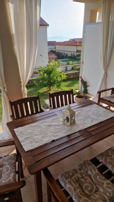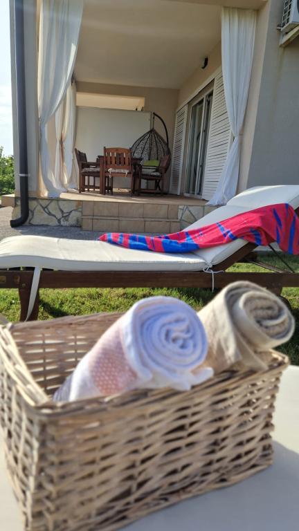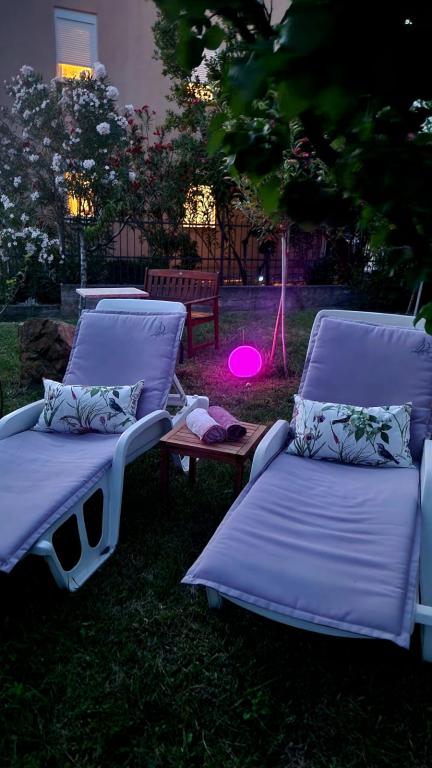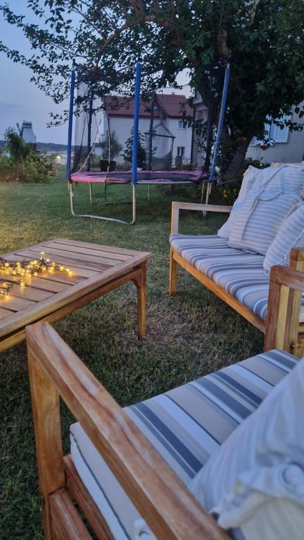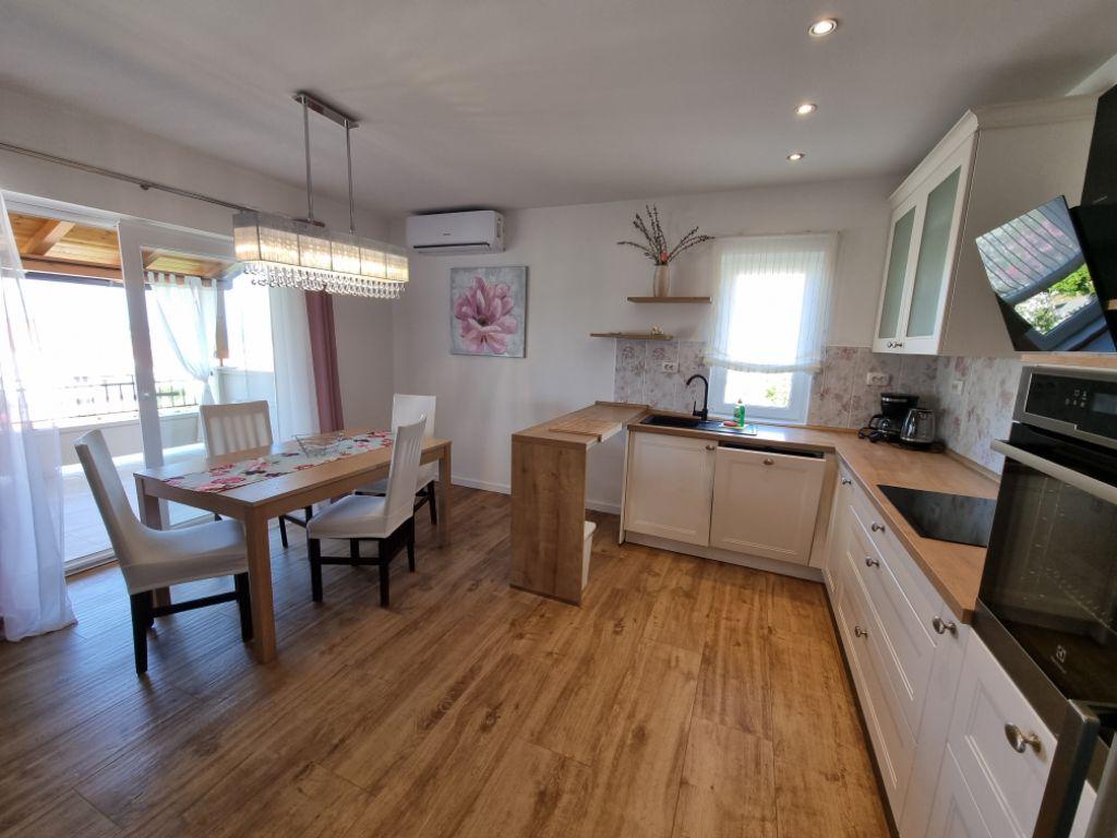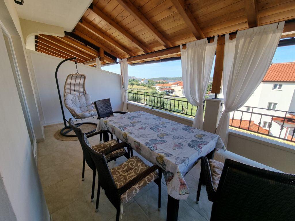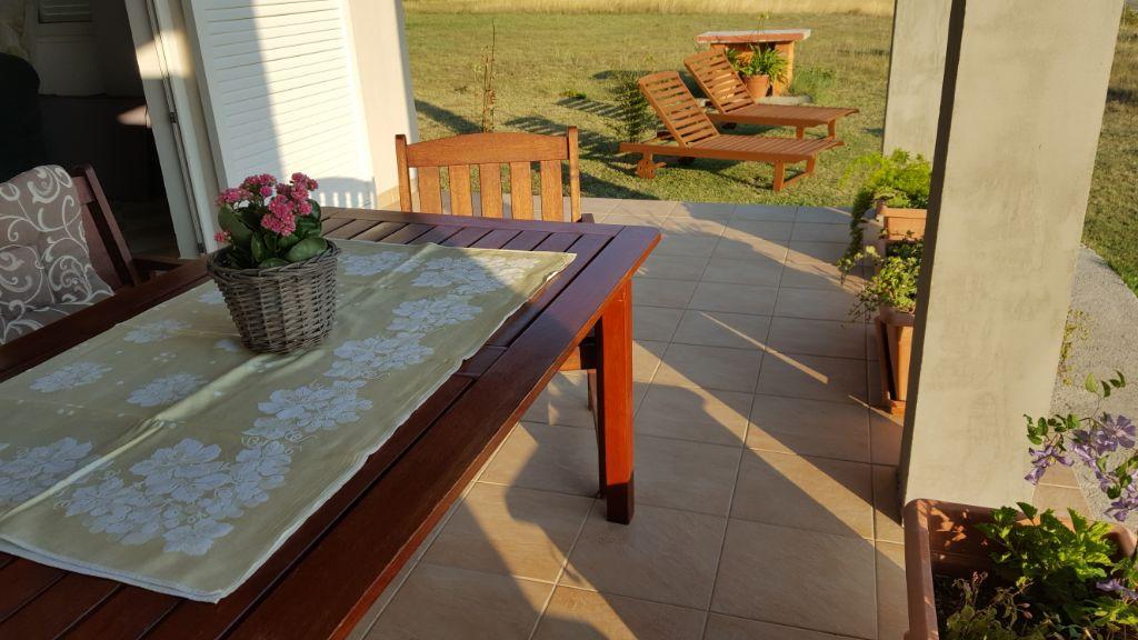 Lijepo uredeni apartmani sa svom opremom za olaksavanje vaseg odmora. Kuca je okruzena velikim vrtom u kojem su djecje igraliste i grill. Svaki apartman ima zasebnu terasu s pogledom na more. Kuca je udaljena 400 m od mora i najblize plaže.