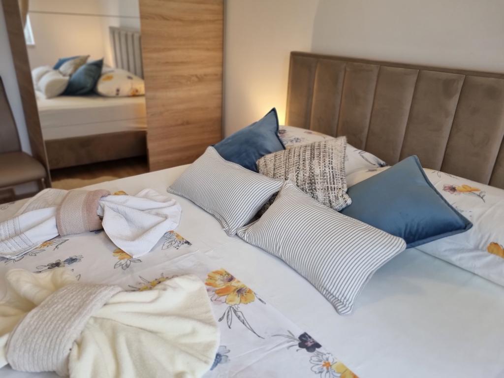 Smještajne jediniceU nasim apartmanima dolazak je moguc iza 14 sati a odlazak do 10 sati. Za potvrdu rezervacije potreno je uplatiti akontaciju od 30% od ukupnog iznosa. Ostatak placate na dan dolaska u objektu. Dodatna osoba naplacuje se 20 eura po danu. Kucni ljubimac je 20 eura po danu (za jednog kucnog ljubimca).