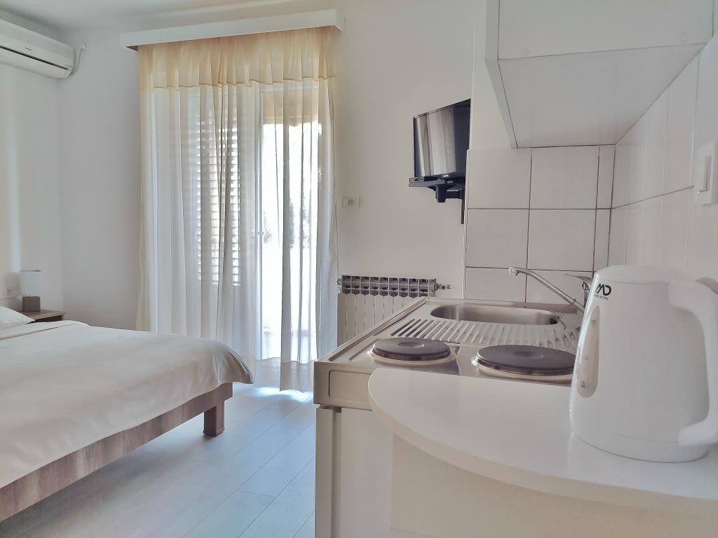 Pročitaj više Smještajne jediniceVrijeme dolaska: od 14.00 h Vrijeme odlaska: do 10.00 h Prilikom rezervacije potrebna je akontacija, ostalo se plaća u gotovini za vrijeme boravka. Ne primamo kućne ljubimce.