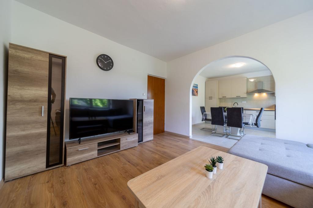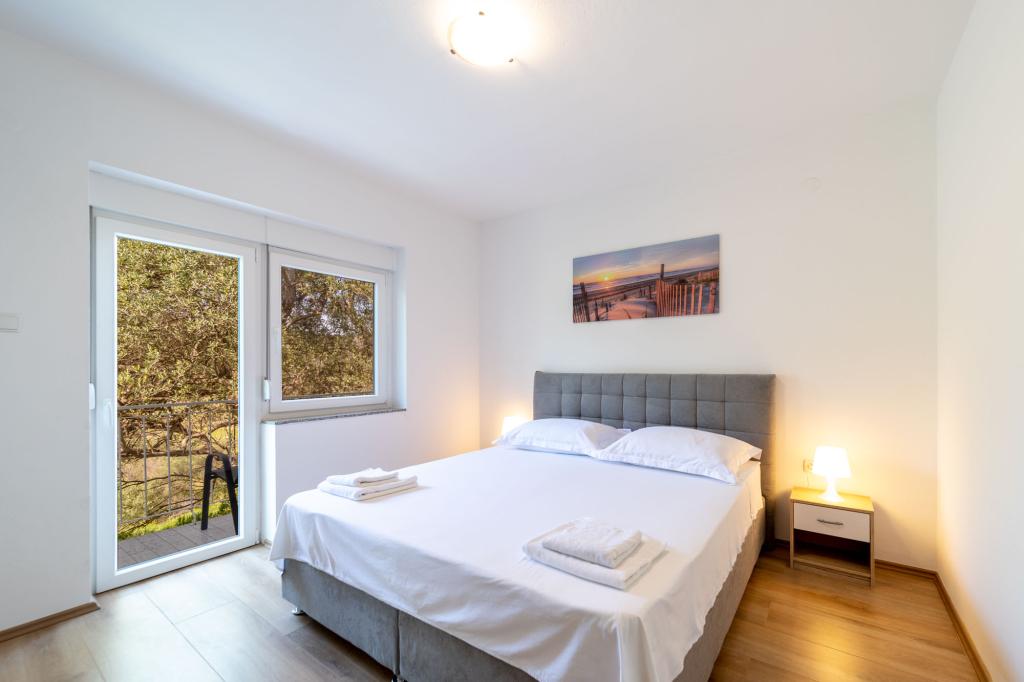 Novouređeni apartmani sa dvije kupaonice. Smješten je u mirnijem- šumovitom dijelu Palita. U sklopu objekta je moguće koristiti vanjski roštilj i terasu za opuštanje.
