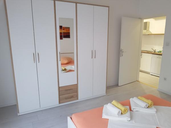 U našoj ponudi imamo kompletno uređene apartmane, sa klimom, terasom, internetom, parkiralištem i vezom za brodice. Kuća se nalazi 200 m od prve pješčane plaže, 100 m od restorana, marketa, pekarnice, šetnice i rent a boata. Svi apartmani su uređeni prije godinu dana. Idealno je mjesto sa obitelj sa djecom i turiste sa brodicama, budući se 150 m od kuće nalazi vez za brodice. Želimo Vam dobrodošlicu u naše apartmane.......... . Naši nam se gosti uvijek vraćaju!!!!!!!