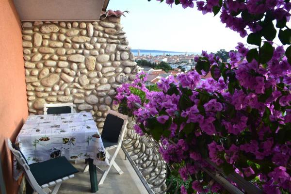 Apartmani su smješteni na brežuljku, u blizini starog grada Raba. Kuća je okružena zelenilom i ima prekrasan pogled na more i grad. Apartmani imaju odvojeni ulaz, a gostima su na raspolaganju 2 parkirališta. Objekt se nalazi 5 minuta hoda do centra te 15 minuta hoda do plaže.