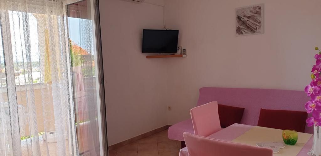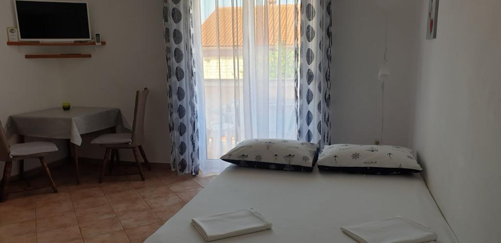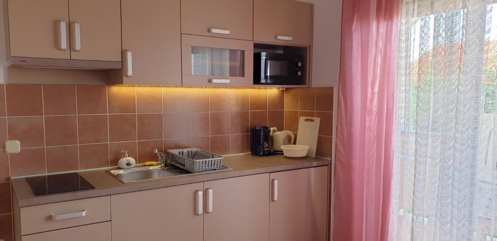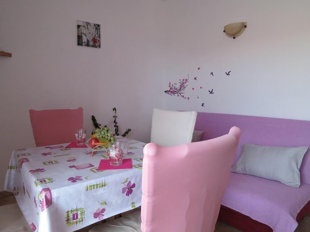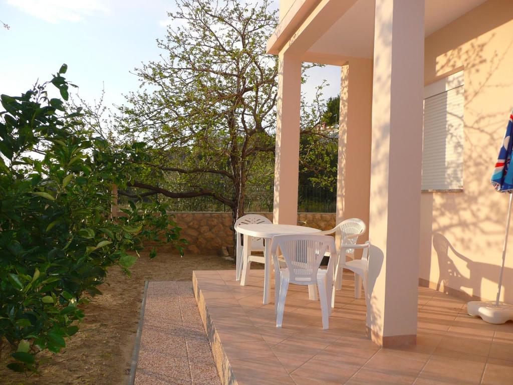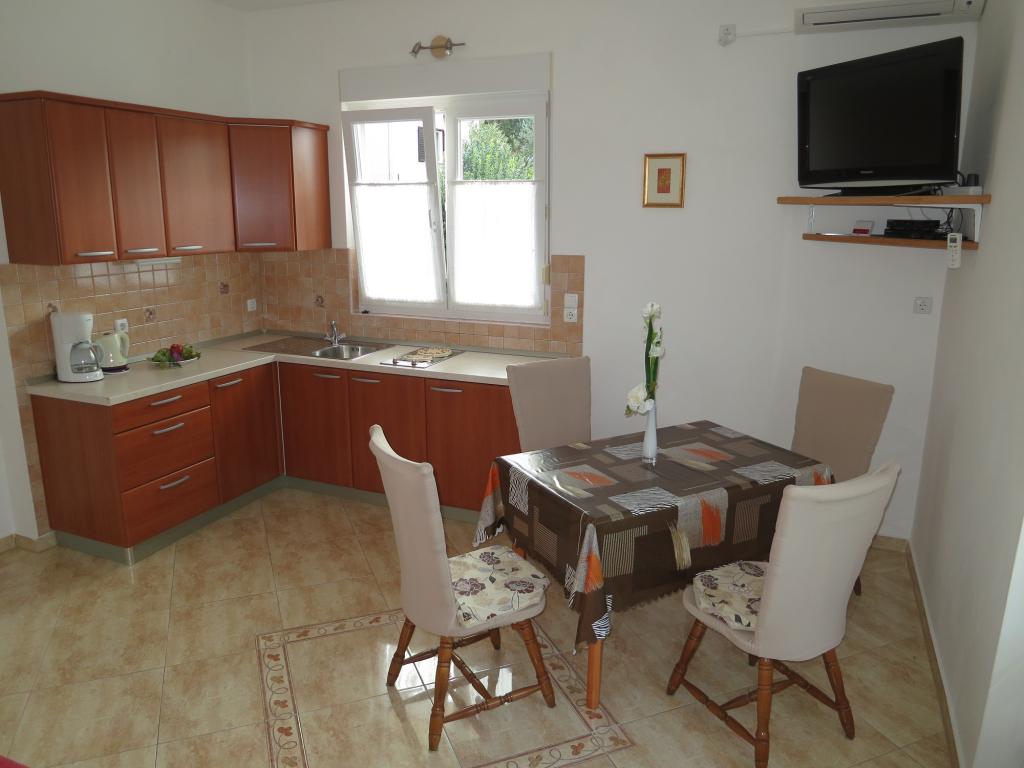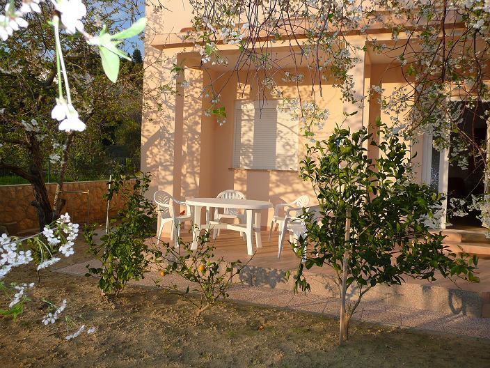 Naši kompletno opremljeni apartmani nalaze se na mirnoj lokaciji, samo 5 minuta hoda do centra te 10 minuta hoda do plaže. U svakom apartmanu se mogu smjestiti dvije odrasle osobe i 1 ili dvoje djece. Apartman u prizemlju raspolaže terasom , apartmani na prvom katu imaju balkon pogledom na vrt. Privatno parkiralište se nalazi u dvorištu kuće.