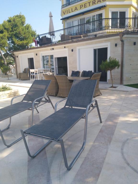 Na otoku Rabu, u mjestu Banjol, nalazi se maleni poluotok imena Petrac, na kojem je smještena naša villa. Villa Petrac je novoizgrađen apart – hotel sa obiteljskom atmosferom. Villa ima 13 luksuzno opremljenih apartmana. Iz svih apartmana proteže se se prekrasan pogled na more, 50 parkirnih mjesta te luksuzni restoran sa terasom na samom moru uz šum valova, prirodnom hladovinom palmi i borova. Sa terase Ville “Petrac” puca očaravajući pogled na lanterne otoka Dolina (Otoka suza), Školja (Otok sreće), Frkanja (Otok ljubavi) te Galofarin (Greben rastanka), siluete zidina milenijskog Municipiuma Arba sa svoja četiri zvonika sa jedne strane te zidine Miramare sa druge strane te barbatski kanal sa kojeg brodice i jahte uplovljavaju u luku Rab. Uz samu vilu nalazi se šetalište sa uvalicama i plažama koja vodi sve do grada Raba. Sve to u neposrednoj blizini naših posjetitelja - pravi izazov za fotoaparate turista. Ugodan boravak i Dobar tek želi Vam osoblje Ville Petrac.