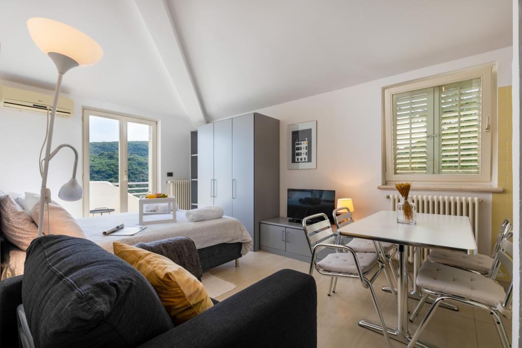 Studio smo rezervirali izravno od domaćina tjedan dana u kolovozu. Domaćica je vrlo ljubazna, uslužna i otvorena; razgovarali smo nekoliko puta. Smještaj je vrlo čist, novouređen, a okolina prekrasna, baš kao na fotografijama. Dobili smo svježe ručnike sredinom tjedna, a kuhinja je također bila vrlo dobro opremljena. Možete parkirati na ulici ispod kuće na privatnom parkirnom mjestu, sigurno. Pogled je prekrasan, a plaža je blizu. Istina je da se treba popeti puno stepenica, ali cijeli je Rabac brdovit pa smo to i očekivali. Hvala!
