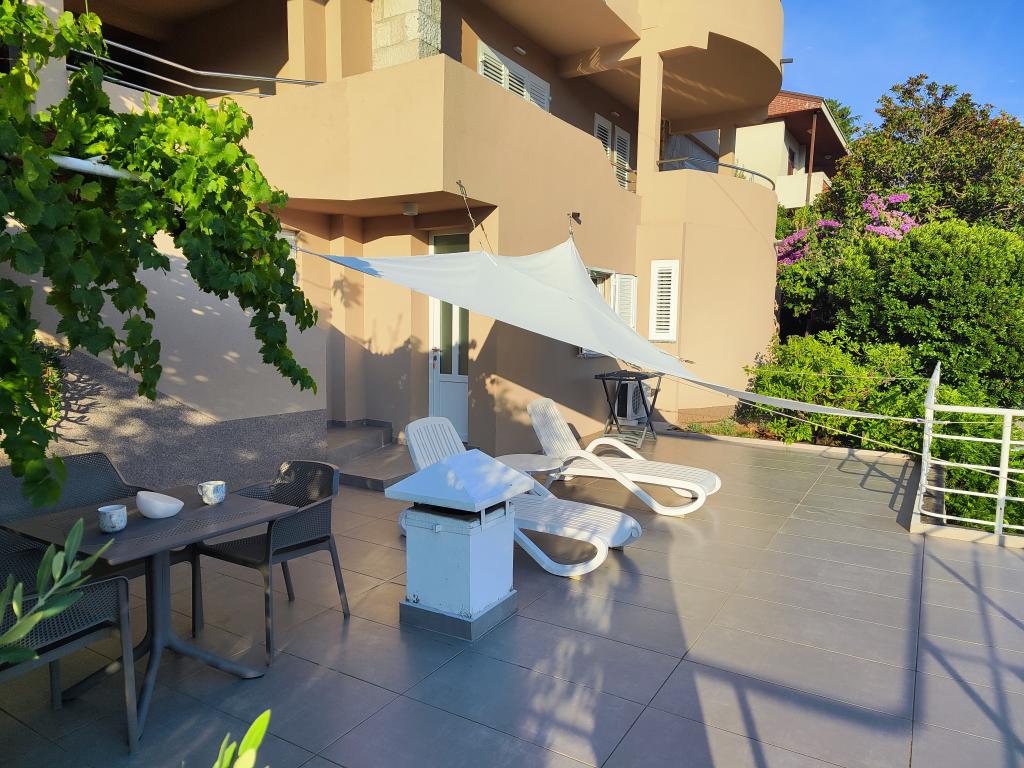 Bili smo ovdje tjedan dana početkom srpnja 2024. (dvije obitelji s malom djecom u dva A4 apartmana). Apartmani se nalaze na istom katu i imaju zajedničku verandu s garniturom za sjedenje i pogledom na zaljev. Kuća je udaljena 10-tak minuta od plaže (do plaže vode stepenice). Lijepo uređeni apartmani, opremljena kuhinja (toster, kuhalo za vodu, štednjak s pećnicom i sl.). Klima uređaj, ručnici i osnovne higijenske potrepštine u kupaonici. Besplatno parkiranje cca 50m od apartmana na malom javnom parkingu. 5 minuta hoda od vreve glavne šetnice pa su večeri mirne. Za shopping unutar 10 minuta vožnje gdje ćete pronaći Lidl, Spar i lokalne trgovine. Bili smo jako zadovoljni ovdje i rado bismo se vratili. Samo mala zamjerka, madraci su bili jako mekani, ali može se preživjeti.