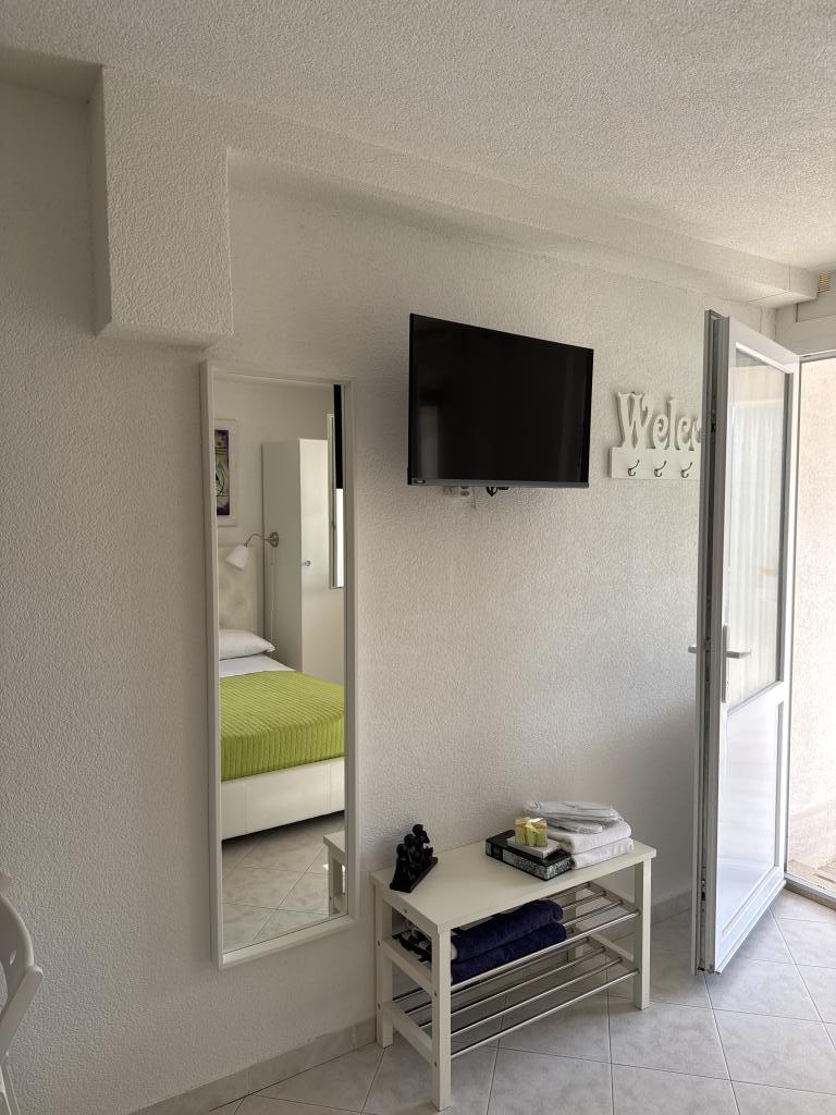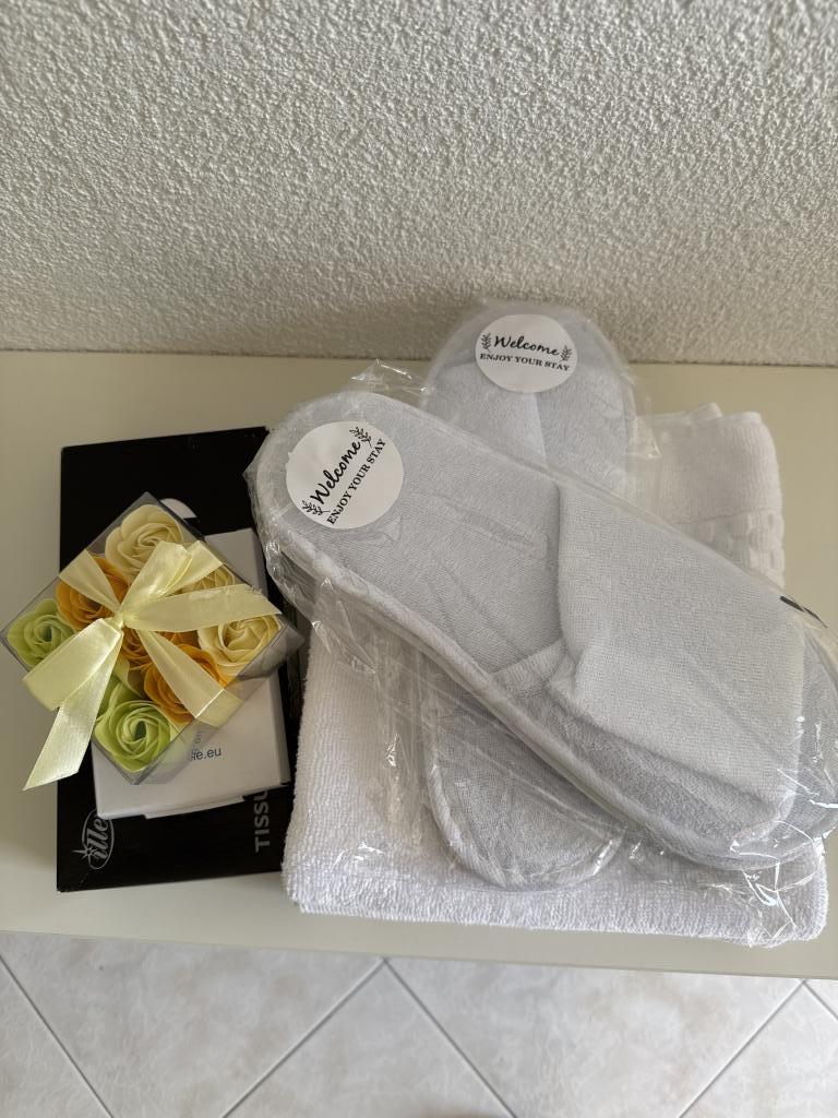 CasaMare dočekuje goste osobno U opuštenoj atmosferi check in uz piće dobrodošlice U studio,apartmanu vas čeka voda i kapsule za kavu isto tako šećer sol ulje i papar Sve u količini monodoze Svi Studi ,apartmani su kompletno opremljeni Posteljina ,ručnici,toaletni papir,sredstva za čišćenje ,papuče ,ručnici za ležaljke na tarazi