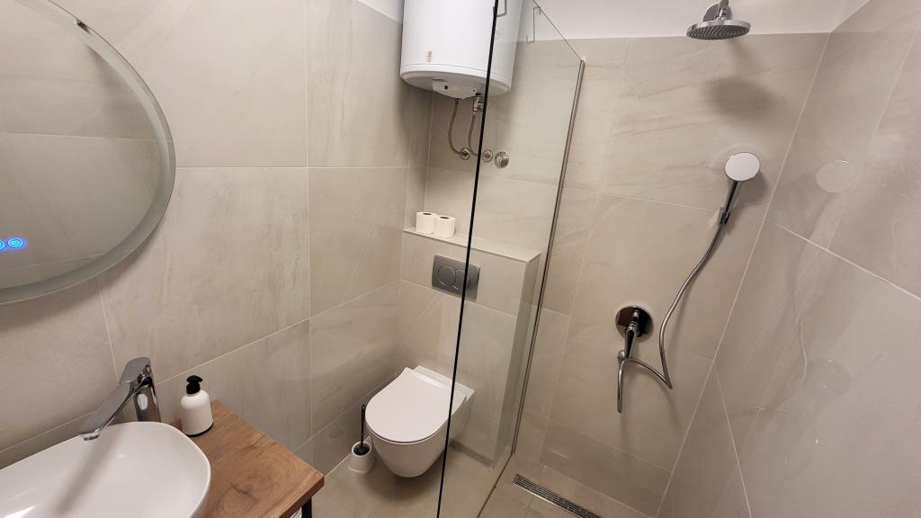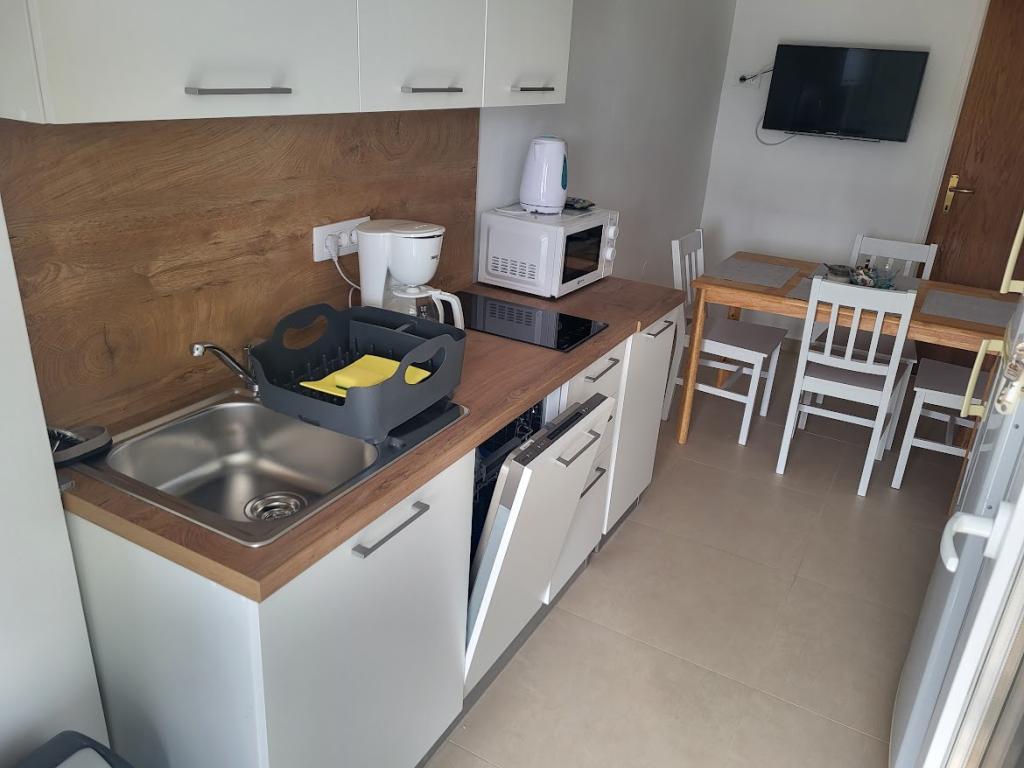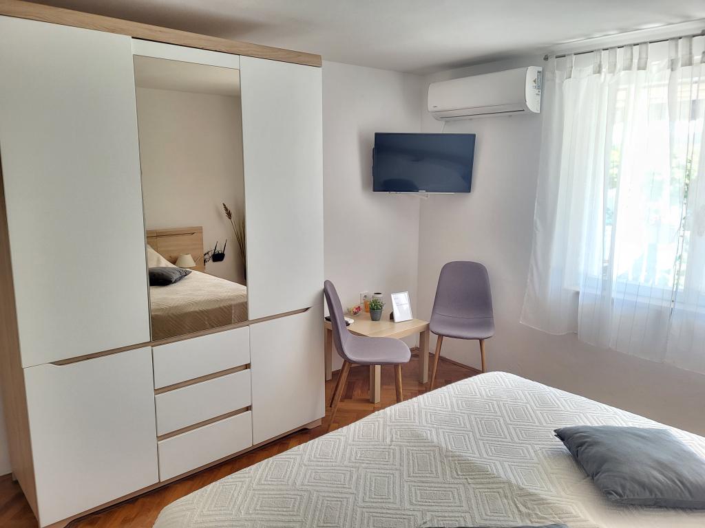 Vrlo miran i udoban smještaj. Vlasnica je vrlo ugodna i uslužna dama. Apartman je čist, lijepo namješten i potpuno opremljen. Do plaže je kratka šetnja, tako da možete otići ravno tamo u kupaćem kostimu. Trgovina je udaljena cca 5-10 minuta hoda, odmah ispod apartmana su dva restorana, jedan po pristupačnim cijenama, drugi luksuzniji. Parkiranje je malo kompliciranije, ali nije strašno. Rado bismo se opet vratili ovamo.