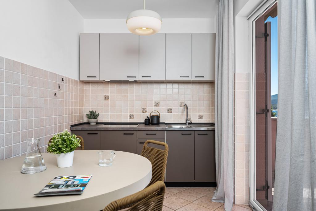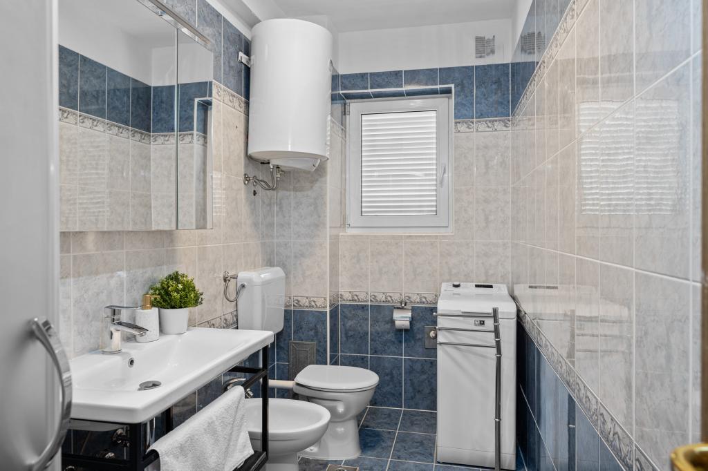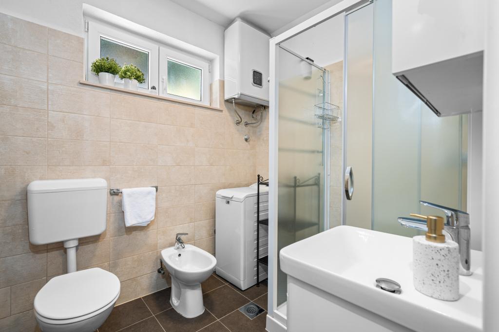 Mi se vozimo, a vozit ćemo se samo ovdje. Apsolutno nevjerojatni vlasnici toplog srca. Smještaj čist i udoban. Imali smo A4 - dvije spavaće sobe, kupaonicu s WC -om i perilicom rublja, odvojeni još jedan WC. Dnevni boravak s kuhinjom i perilicom posuđa. Klima i ogromna terasa s najboljim pogledom na more i planine. Hvala vam na još jednom lijepom odmoru i dobrotama od domaćice. Palačinke i domaći deserti bili su veliko iznenađenje za doručak koji priprema za goste.