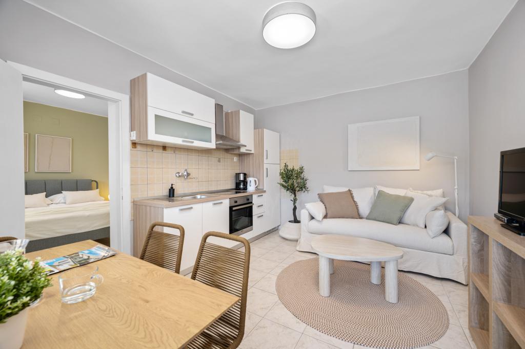 Apartman je bio odličan i vrlo čist, s puno vanjskog prostora za opuštanje. Međutim, u kuhinji je nož bio toliko tup da nije mogao rezati ni rajčicu, a kamoli kruh, a daska za rezanje bila je vrlo tanka. Sama kuhinja bila je prilično mala. Osoblje je bilo izuzetno ljubazno i gostoljubivo. More je na samo kratkoj pješačkoj udaljenosti, ali budite spremni na puno stepenica. Ne bih ga preporučio osobama s ograničenom pokretljivošću ili onima koji imaju poteškoća s hodanjem. Sveukupno, prekrasno mjesto za boravak.