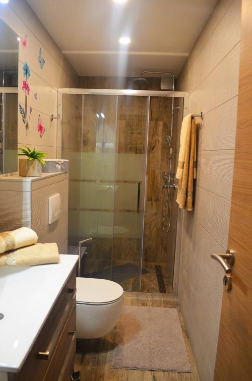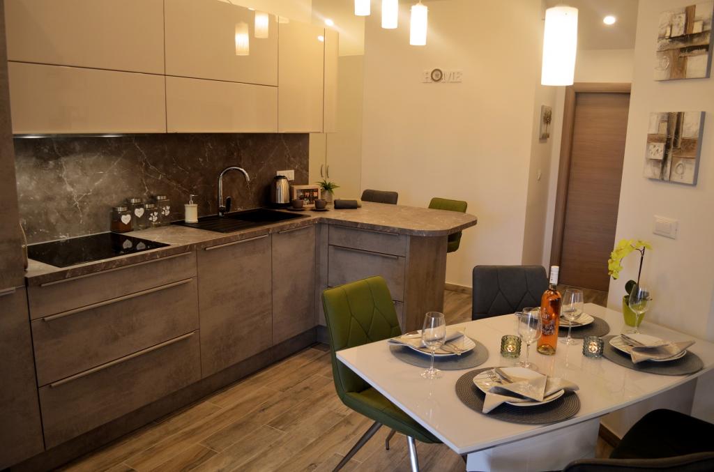 Apartman u kojem smo boravili je jako lijep i prostran, ima veliku terasu sa predivnim pogledom na more. Dočekala nas je jako lijepa dobrodošlica kada smo stigli. Mjesto u kojem se nalaze apartmani je jako mirno sa predivnim čistim morem i idealno je za obitelji sa djecom.