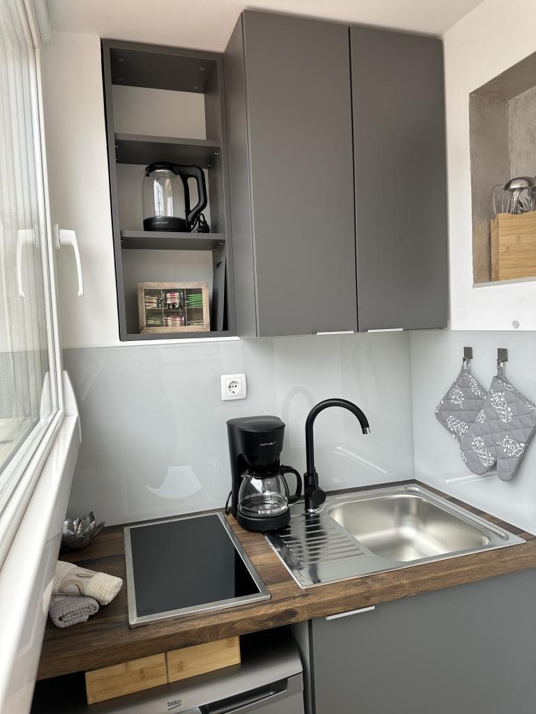 Moj dečko i ja smo obožavali Deluxe apartman, gdje smo boravili 10 dana. Apartman je čist i ima sve što vam treba ako volite ostati kod kuće i kuhati, opustiti se na udobnoj kauču na razvlačenje i gledati pametni TV ili uživati u lijepom pogledu na more s terase. Posebno smo cijenili što nismo čuli nikoga od drugih gostiju ili susjeda, rolete u spavaćim sobama i klima uređaj koji je bio dovoljno snažan da ohladi cijeli apartman. Kuhinja je potpuno opremljena posuđem, loncima i tavama, nekim začinima, te ima pećnicu, mikrovalnu pećnicu, aparat za kavu, perilicu posuđa, nekoliko kapsula za perilicu posuđa i tekućinu za pranje posuđa. Tu su i perilica rublja, deterdžent za rublje i omekšivač. U kupaonici dobivate gelove za tuširanje, kreme za tijelo i blazinice. Bili smo ugodno iznenađeni i osjećali smo se kao da imamo sve što nam je potrebno. Lokacija je mirna, tik uz more - savršena za sve koji traže mir i tišinu. Nalazi se oko 15 minuta vožnje od grada Korčule, gdje postoji mnogo dobrih (ali skupih) mogućnosti za večeru, jednodnevni izlet ili jednostavno uživanje u šetnji prekrasnim starim gradom. Vjetar je bio prilično jak tijekom našeg boravka, što je značilo da nije bilo toliko vruće i bilo je ugodno provoditi vrijeme vani. U ovom apartmanu imate vlastite ležaljke na terasi, ali postoje i neke zajedničke ležaljke za sve goste tik uz more, u hladu. Vlasnica, Rina, vrlo je ljubazna i susretljiva - čak smo dobili i pladanj dobrodošlice s hranom, što nam je bilo jako drago. Toplo preporučujem ovo mjesto; već se želimo vratiti sljedeće godine!