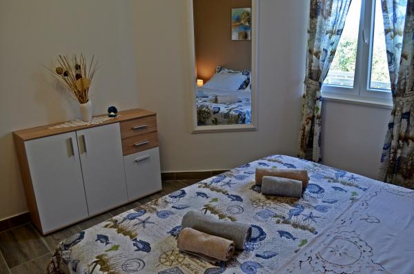 Smještaj i domaćini su odlični. Apartmani su opremljeni svime što vam može trebati na odmoru. More je odmah ispod apartmana. Plaža je betonirana s dostupnim ležaljkama. Parking je osiguran. Domaćini su jako dragi, uvijek dostupni i spremni pomoći. Svakako preporučam.