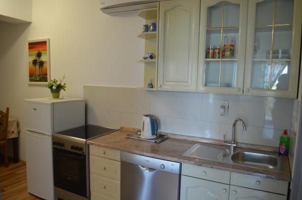 Odličan stan. Čisto i mirisno. U apartmanu imate sve što vam treba: blender, mikrovalnu pećnicu, sokovnik... Po dolasku čekali su nas grickalice, piće i naravno ljubazna i nasmijana gospođa Rina. Mirna lokacija, ležaljke na plaži. Bili smo jako zadovoljni.