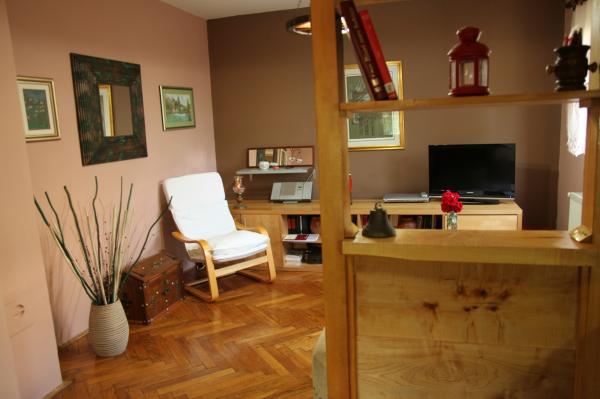Smješten u kući, okruženoj prelijepom prirodom, Apartman Eva sastoji se od spavaće i dnevne sobe, kuhinje i kupaonice. Samu dobrodošlicu osjetit ćete već pri prilazu kući koji svojim izgledom podsjeća na bajkoviti park. Stražnji dio kuće iznenadit će vas prekrasnim pogledom na prirodu i voćnjak gdje možete ugodno sjesti i uživati ili šetati i trčati. Ubrana jabuka, kruška, šljiva ili dunja, iz voćnjaka u kojem je prirodan uzgoj, oduševit će svakog sladokusca. Mala dolina iza kuće krije i mjesto za roštiljanje gdje možete sjesti na klupu i uživati u finim miomirisima vlastitog roštilja.