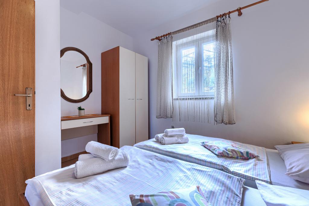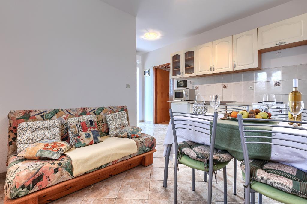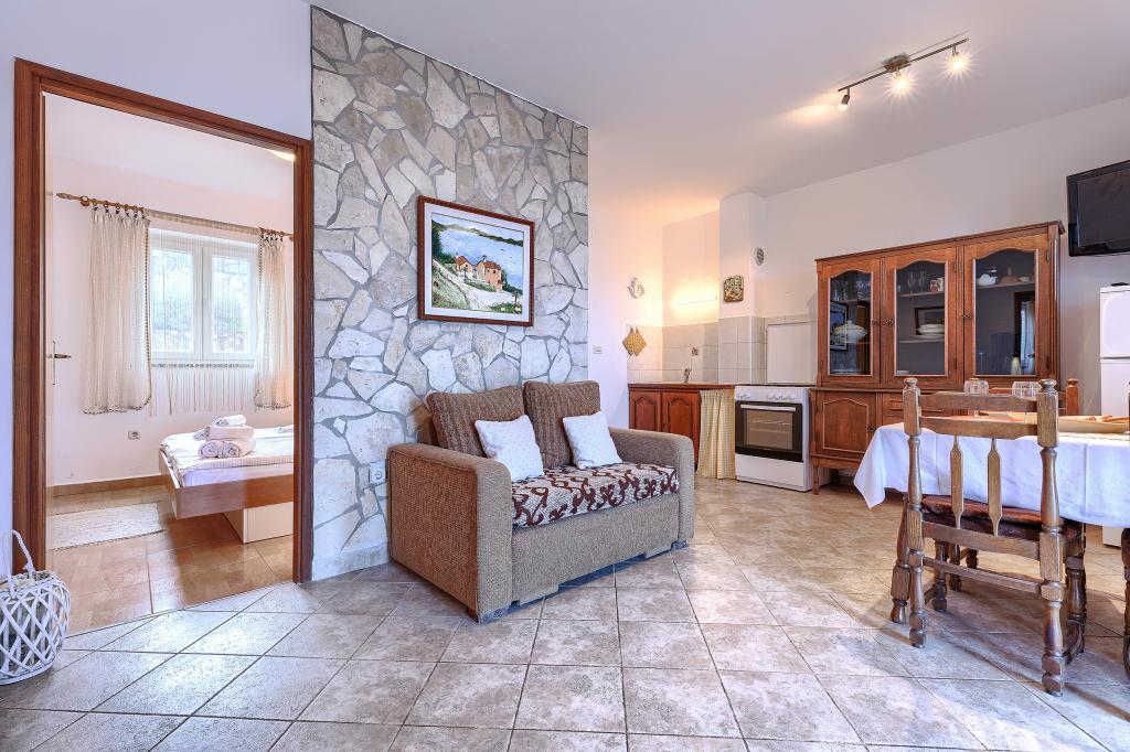 Pročitaj više Smještajne jediniceUvjeti rezervacije: 1. Molimo platite akontaciju, ostatak iznosa je potrebno platiti po dolasku. 2. Mogućnost dolaska nakon 16:00, a odlazak do 10:00. 3. Cijena uključuje turističku pristojbu, klima uređaj, privatan parking, TV, Wi-Fi, posteljinu, ručnike i završno čišćenje. 4. Po dolasku, predajte identifikacijske dokumente svih gostiju vlasniku objekta radi prijave. 5. Ne ostavljajte klima uređaj uključen ako za njim nema potrebe, na primjer, dok ste izvan apartmana i nemojte ga koristiti sa otvorenim prozorima i vratima. Molimo vas da zatvorite sva vrata i prozore kada ste vani kako ne bi došlo do štete u slučaju oluje, propuha. 6. Osobama koji nisu gosti nije dopušteno prenoćiti ili boraviti cijeli dan u prostorijama 7. Gost koji namjerno ili slučajno prouzroči štetu morat će nadoknaditi puni iznos štete. 8. Gostu koji krši kućni red i remeti mir bezuvjetno će biti odbijen smještaj 9. Vlasnik objekta ne odgovara za stvari gosta, ali upozoriti će gosta na opasnosti.