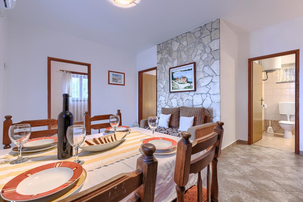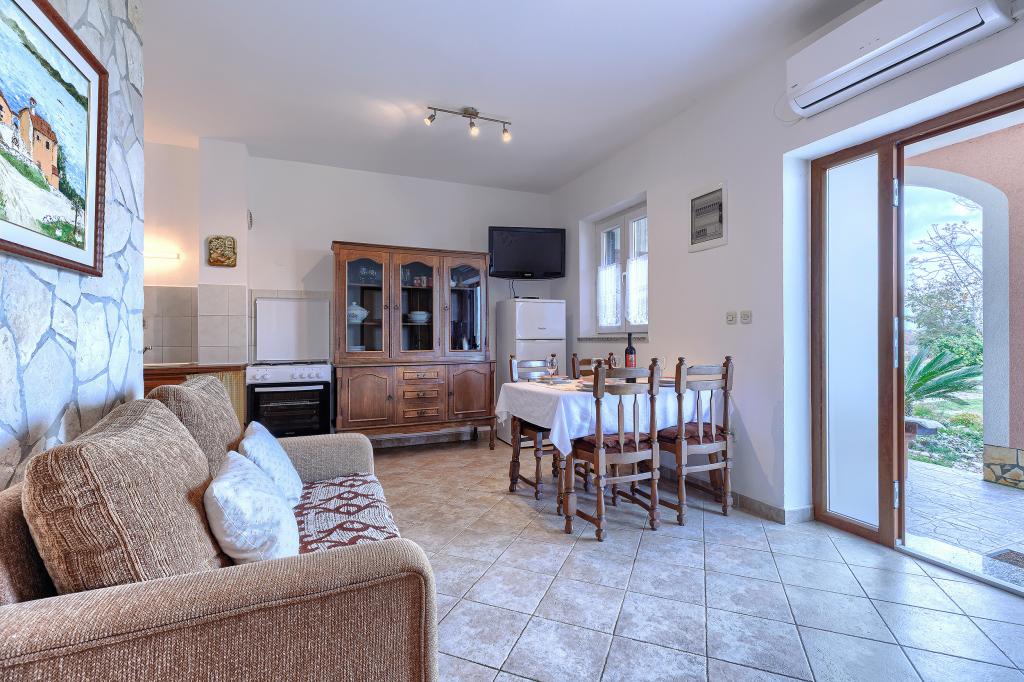 Kuća s više apartmana u naselju Drenje. Nalazi se 5 minuta vožnje do plaže, 15 minuta do grada Labina. Apartmani su smješteni u prizemlju. Apartmani pružaju potpunu privatnost i mogućnost opuštanja i odmora. Jedan apartman ima 42 kvadrata, jednu spavaću sobu sa bračnim krevetom i sa mogućnošću korištenja dodatnog kreveta. Dnevni boravak s blagavaonom, kuhinju sa svim potrebnim uređajima, terasa s koje se pruža pogled na more, kupatilo. Drugi apartman ima 56 kvadrata, dvije spavaće sobe svaka sa bračnim krevetom. Dnevni boravak s blagavaonom, kuhinju sa svim potrebnim uređajima, terasa s koje se pruža pogled na more, kupatilo. Najbliži restoran udaljen je vožnjom 5 minuta, kao i najbliži market. Apartmani se nalaze na mirnoj lokaciji sa ugodnim prirodnim okruženjem– sve što je potrebno za savršen odmor!