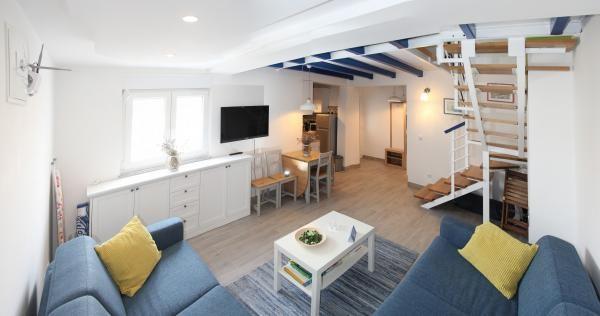 Turistička pristojba je uključena u cijenu.APARTMAN LUKA 4 2 je veličine 65 metara kvadratnih te se nalazi na prvom katu. Na prvom katu je kuhinja i dnevni boravak, veća kupaona te glavna spavaća soba. Kuhinja i dnevni boravak čine jedan prostor sa stolom i stolicama 6 ljudi te su klimatizirani. Tu se također nalazi led tv (82 cm) s satelitskim programom te kauč na razvlačenje 180x200. Kuhinja je nova i opremljena s kućanskim aparatima: plinska ploča, pećnica, napa, kuhalo, toster, mikrovalna, frižider. Kupaona je velika te ima tuš kabinu, toalet i lavandin. Na istom katu nalazi se glavna soba koja je opremljena bračnim krevetom 180200, noćnim ormarićima, ormarom i krovnim prozorom. Na kat vode moderne stepenice gdje je klimatizirana soba s krevetom 160x200 i toaletom te balkonom.