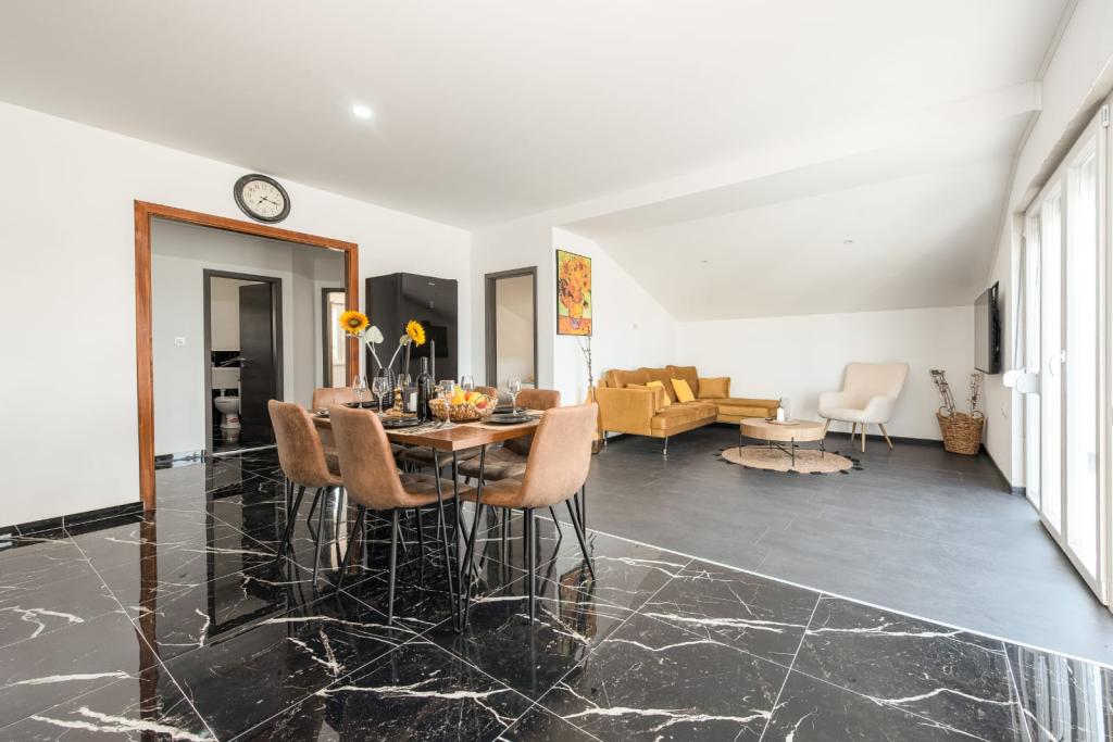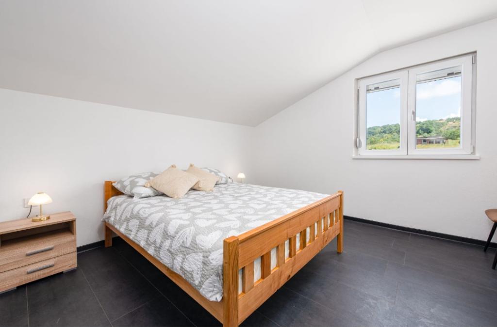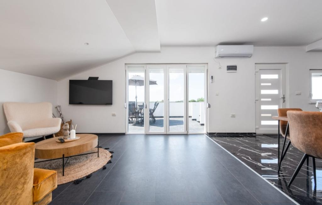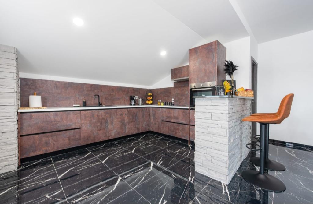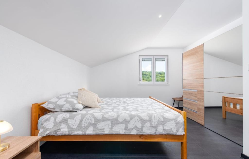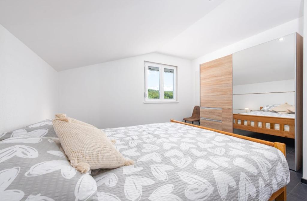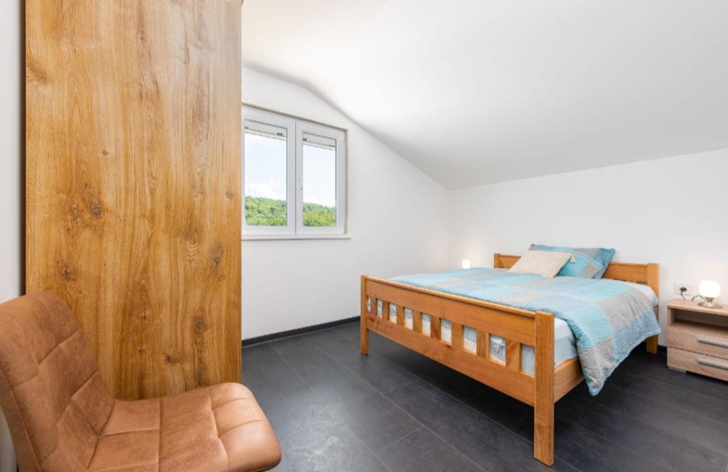 Suvremeno opremljen apartman sa 3 velike sobe ,kupaonicom ,kuhinjom ,dnevnim boravkom i velikom terasom . Na samo 5 minuta vožnje do prekrasnih plaža ,garantira Vam mir privatnost i odmor . Mogućnost korištenja roštilja , privatnog parkinga te uživanja u prekrasnoj okućnici .