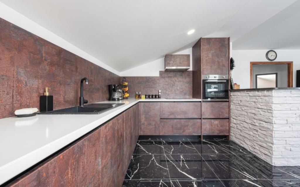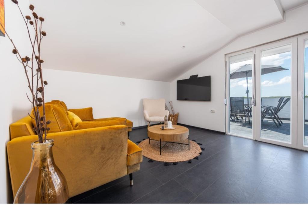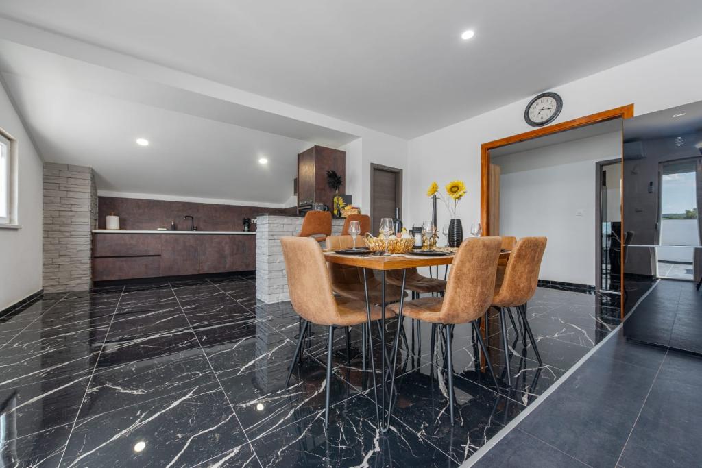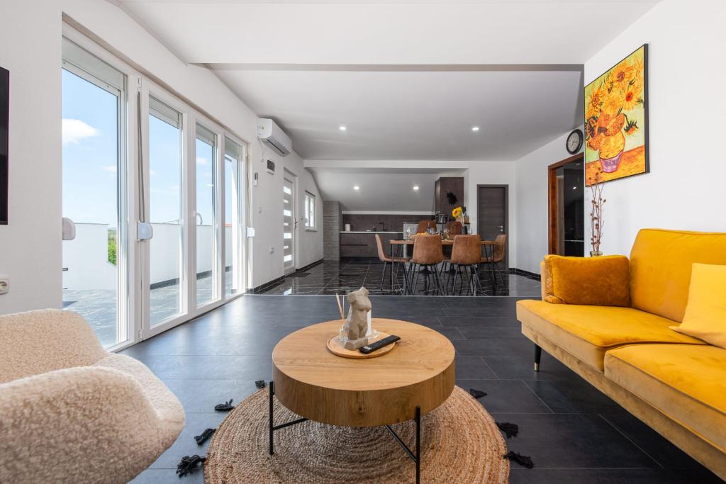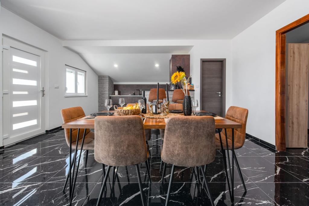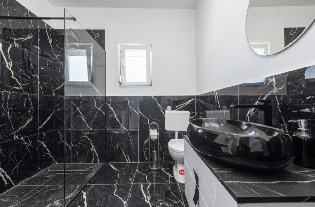 Suvremeno opremljen apartman sa 3 velike sobe ,kupaonicom ,kuhinjom ,dnevnim boravkom i velikom terasom . Na samo 5 minuta vožnje do prekrasnih plaža ,garantira Vam mir privatnost i odmor . Mogućnost korištenja roštilja , privatnog parkinga te uživanja u prekrasnoj okućnici .