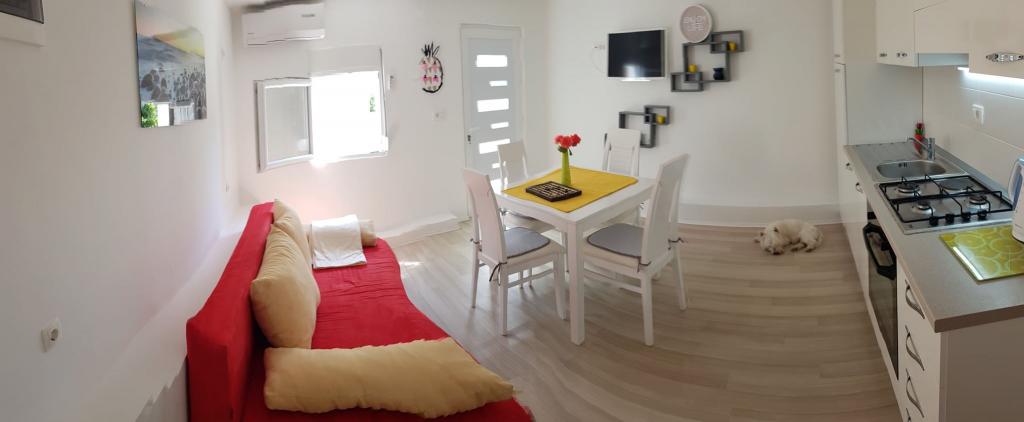 Na ovome mjestu imate sve što je potrebno za savršeno odmor: lijep i uredan apartman koji je blizu prelijepe šljunčane plaze gdje je more kristalno čisto te divne i prekrasne ljude kao domaćine. Ako imate kućnog ljubimca i on će uživati u prekrasnom dvorištu. Svaka preporuka.