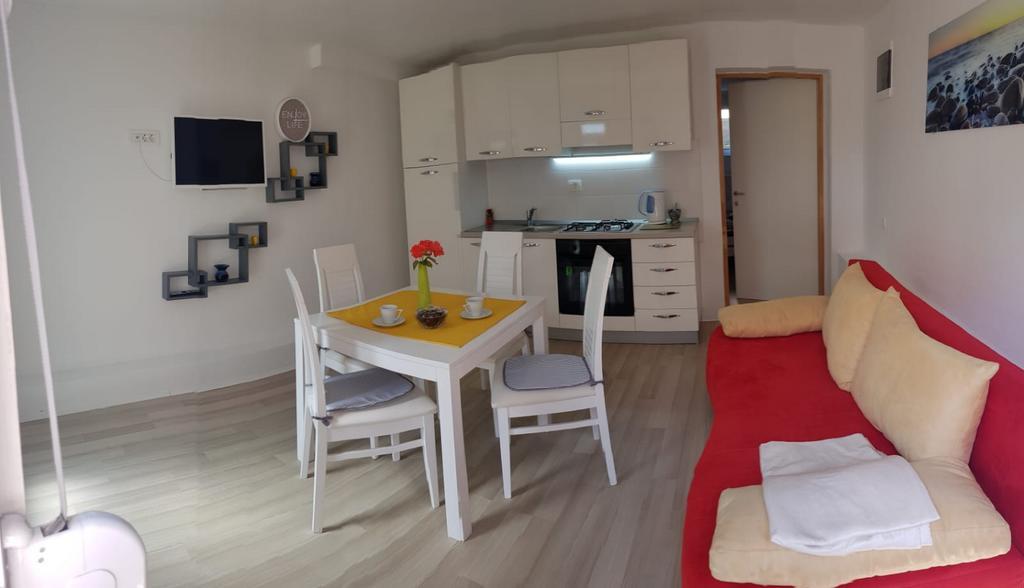 Apartmani vrlo čisti, dobro opremljena kuhinja, ništa nije nedostajalo. Domaćini jako uslužni i ljubazni, brižni prema gostima. Prekrasno mjesto za obiteljski odmor. Šljunčana plaža, postoji skakaonica, malo ljudi. Preporučamo čiste savjesti. Hvala vam puno!!!