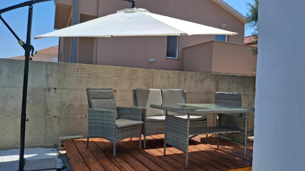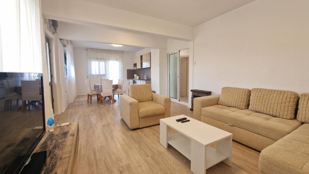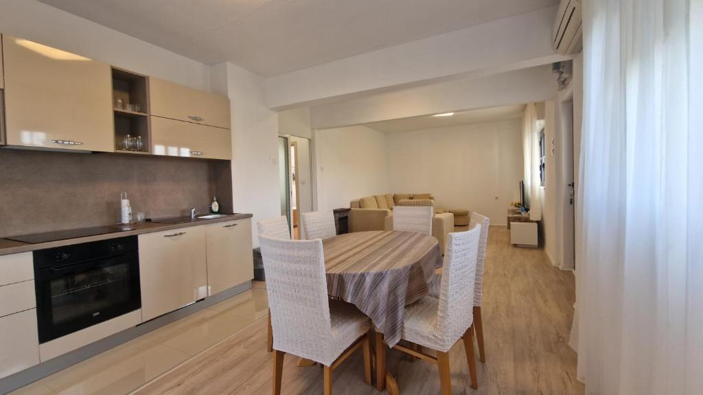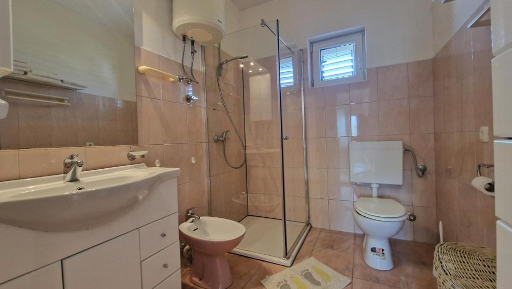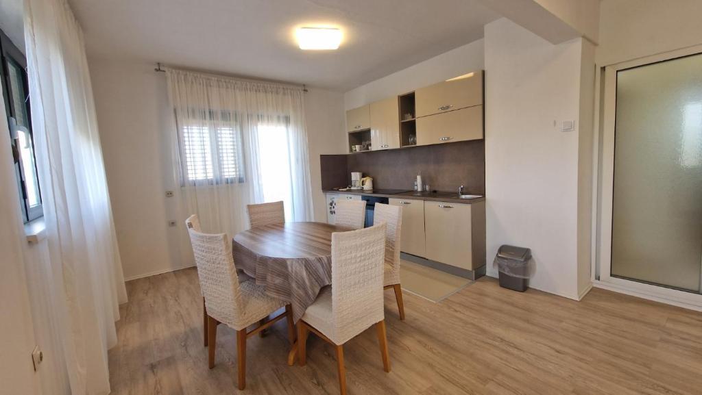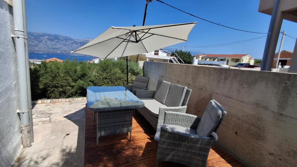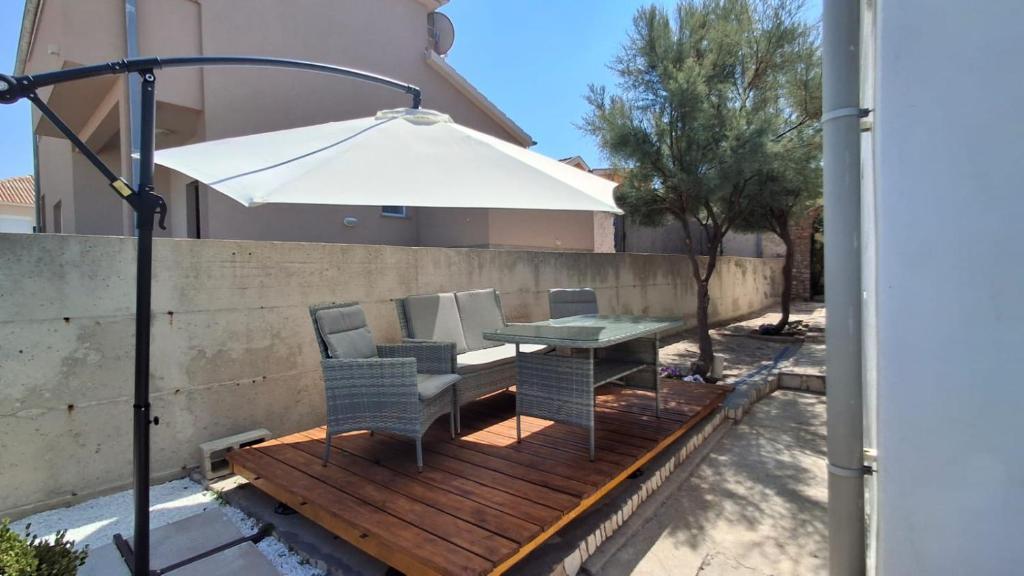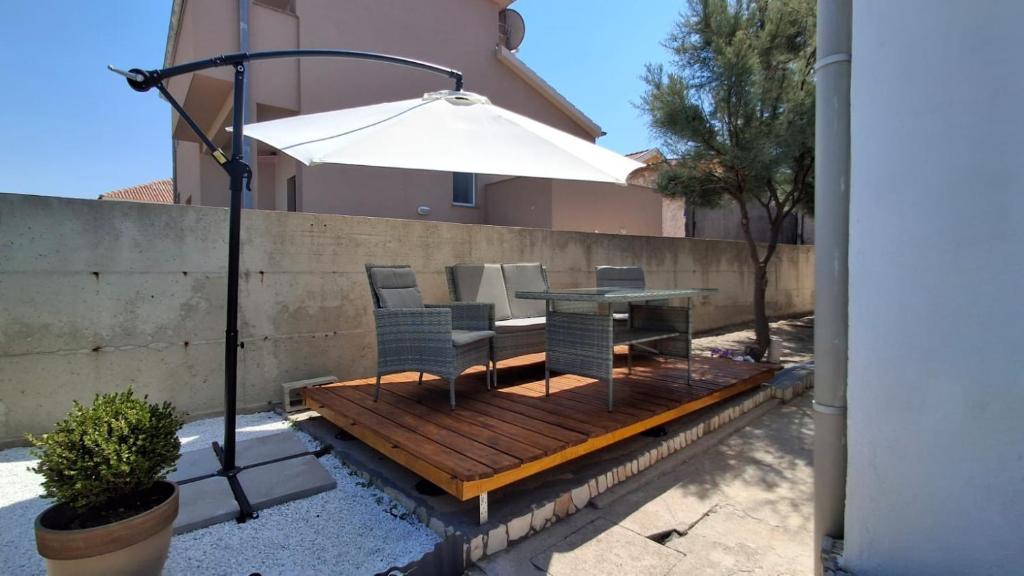 Naši gosti imaju na raspolaganju 2 potpuno odvojena apartmana, parking i kompletan vrt. U vrtu se nalazi poseban objekt sa grillom i vanjski tuš. Iz aparmana se pruža prekrasan pogled na more i planinu Velebit a do plaže vam treba samo 3 minute hoda.