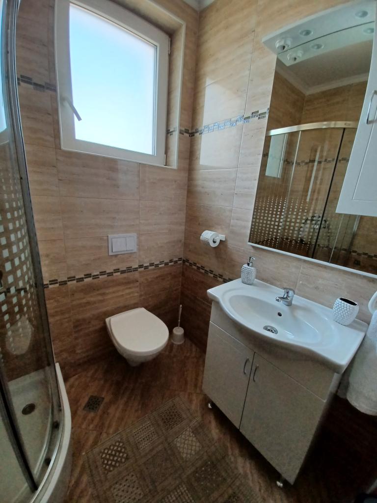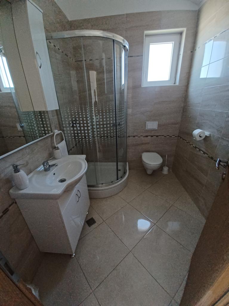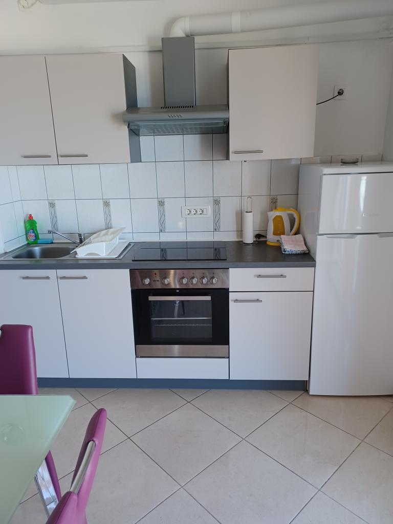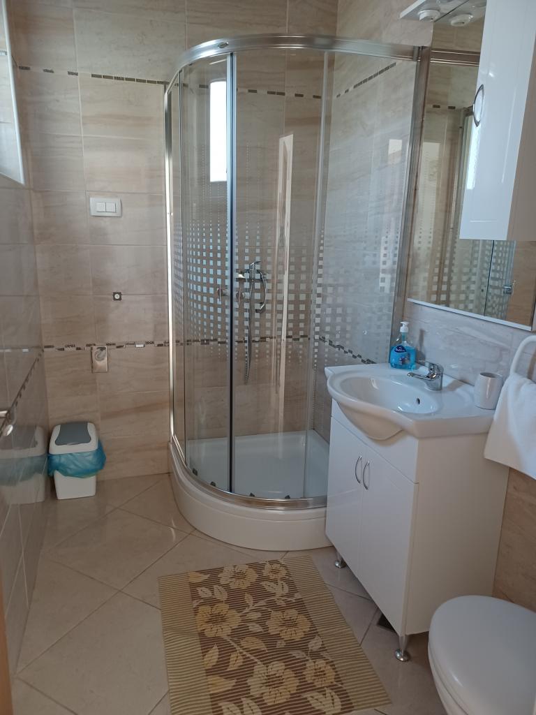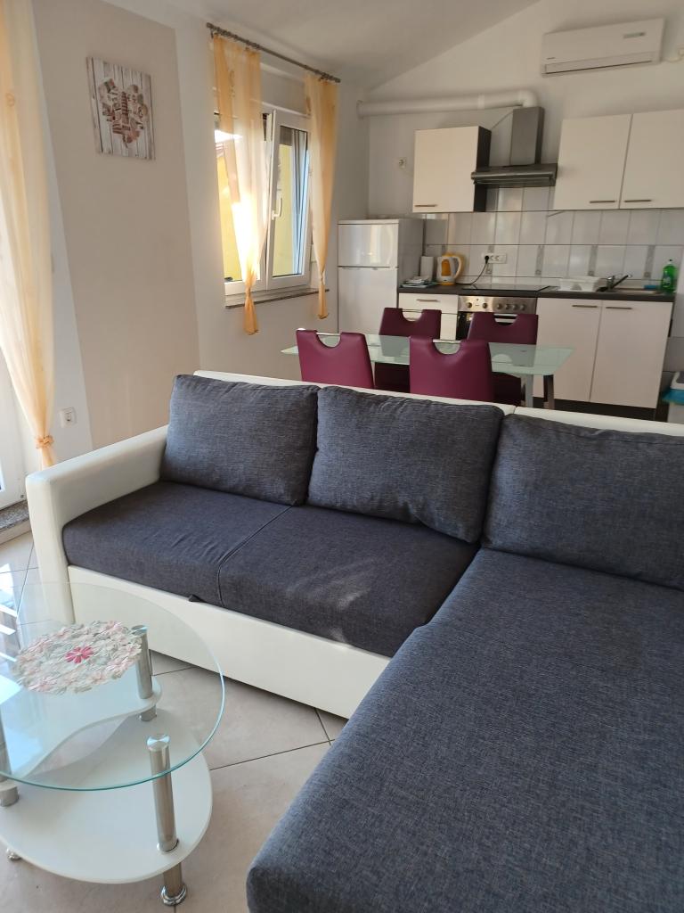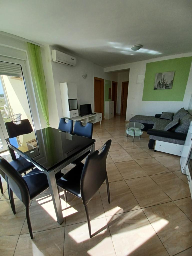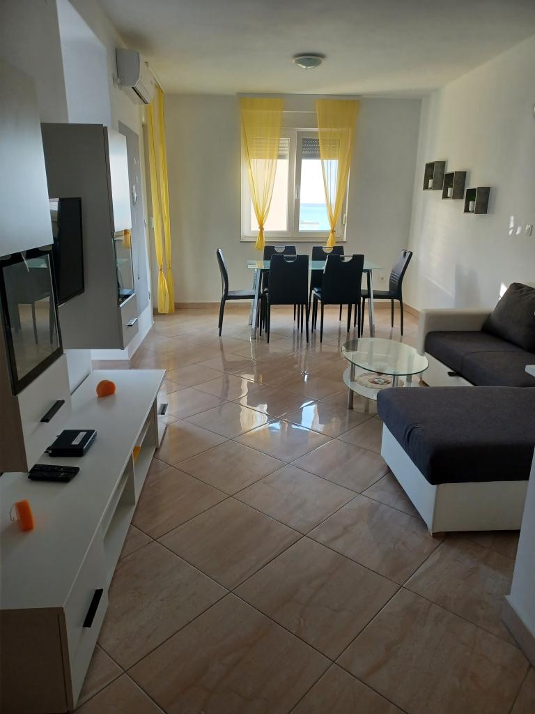 Apartmani se nalaze u mirnom mjestu, udaljeni su 80 m od mora. Kompletno opremljena kuhinja.Imamo dvosobne i trosobne apartmane. Dvosobni apartmani imaju velike terase s prekrasnim pogledom na more.U blizini objekta se nalaze tri restorana s bogatom ponudom jela i pića. U sklopu objekta imamo dječje igralište. Nudimo besplatan parking. Svojim gostima želimo ugodan boravak kod nas!