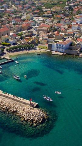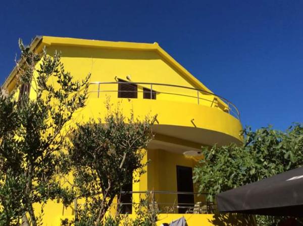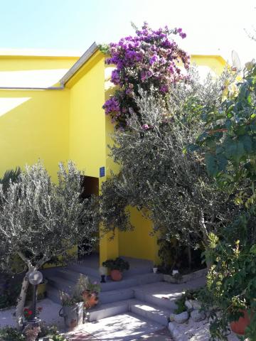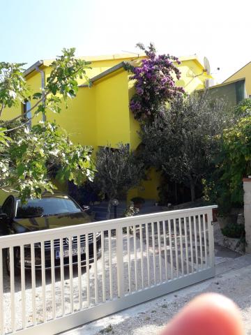 Objekt se nalazi u mirnom okruženju u širem centru mjesta, 4 do 5 min lagane šetnje do plaže i svih potrebnih lokacija za bezbrižno ljetovanje. Blizu su dućani, ambulanta, ljekarna, tržnica, kafići i sve ostalo potrebno za opušten odmor bez vožnje automobilom. Djeca imaju na raspolaganju zatvoreno dvorište u hladu i pješčanik. Parking je osiguran za korisnike apartmana kraj kuće i u cijeni je app. Mjesto za roštiljanje je također dostupno u dvorištu.