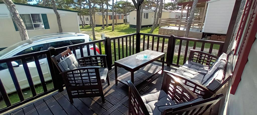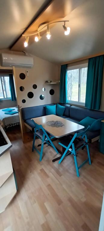 Ostali sadržaji: - besplatni internet koji nudi kamp za posjetitelje - TV - terasa sa stolom i stolicama - opremljena kuhinja - kupaonica s tuš kabinom - klima uređaj, mogućnost hlađenja, sušenja zraka i grijanja - svježa posteljina - nepušački objekt - protupožarni aparat - električni grill