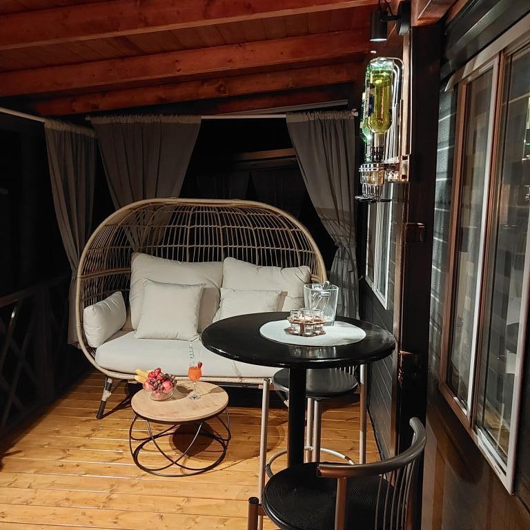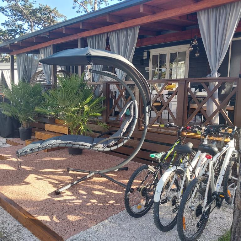 Dodatni sadržaj naše mobl.kućice je renovirana terasa na kojoj smo uredili mini bar sa različitim vrstama pića.Tri bicikla koja možete koristiti za obilazak ovog prekrasnog mjesta.A imamo i SUP za surfanje,a najljepši doživljaj je zalazak sunca kad cjela terasa bude osvjetljena sa solarnim lampama.Naravno i moderni gril koji se nalazi odmah pored terase.