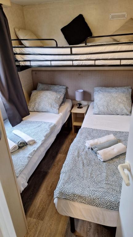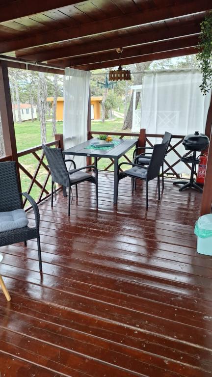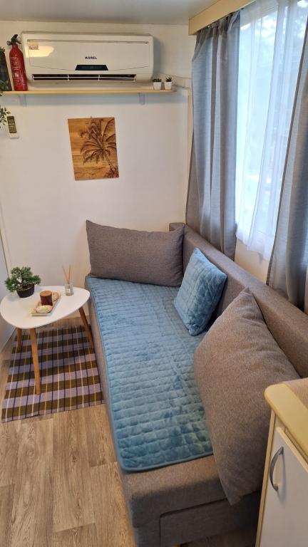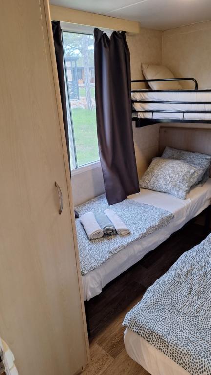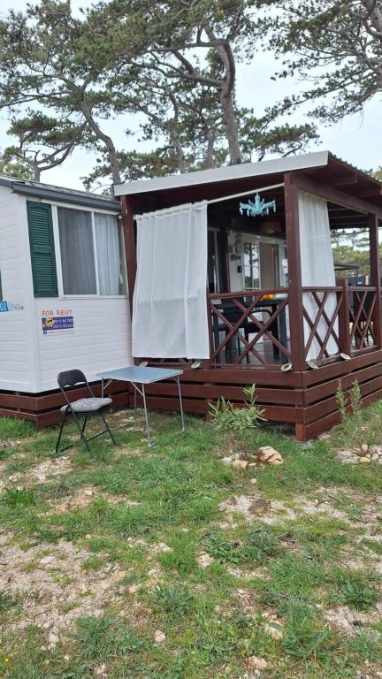 Iznajmljuje se Mobile Home Paula u mjestu Ražanac,nedaleko od Zadra, u kampu Planik. Kućica je veličine 24 kvadrata + terasa Mobilna kućica se sastoji od: >dnevnog boravka s kuhinjom > 2 spavaće sobe (2+3) >kupaona s tuš kabinom > terasa s el.roštiljem >2 ležaljke > vreća za odmor > TV satelit >mikrovalna pećnica > kuhalo za vodu > toster >hladnjak s ledenicom > klima uređaj >besplatni parking U blizini: trgovina Tommy caffe barovi restorani dječija igrališta(5) apoteka tržnica i ribarnica beach barovi pekara plaža (7-8 minuta hoda),2 minute autom